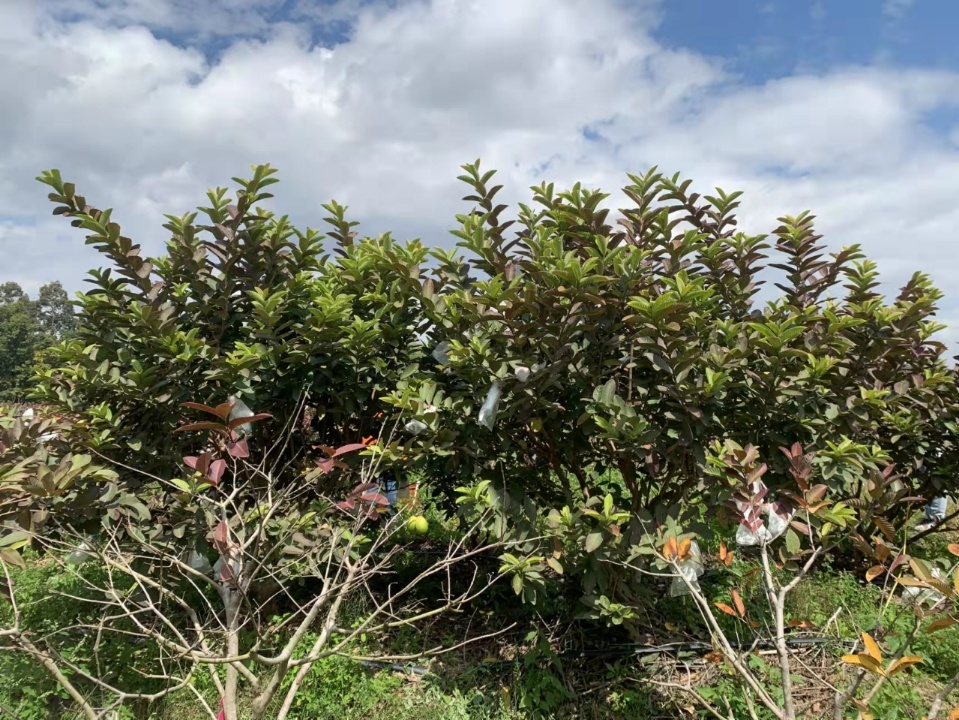 绿色除草:a、使用割草机人工除草。b、在芭乐树下覆盖防草布,这是一种透气、遮阳、保湿的材料,盖上以后小草只能躲在布下非常有限的空间里,长不高。