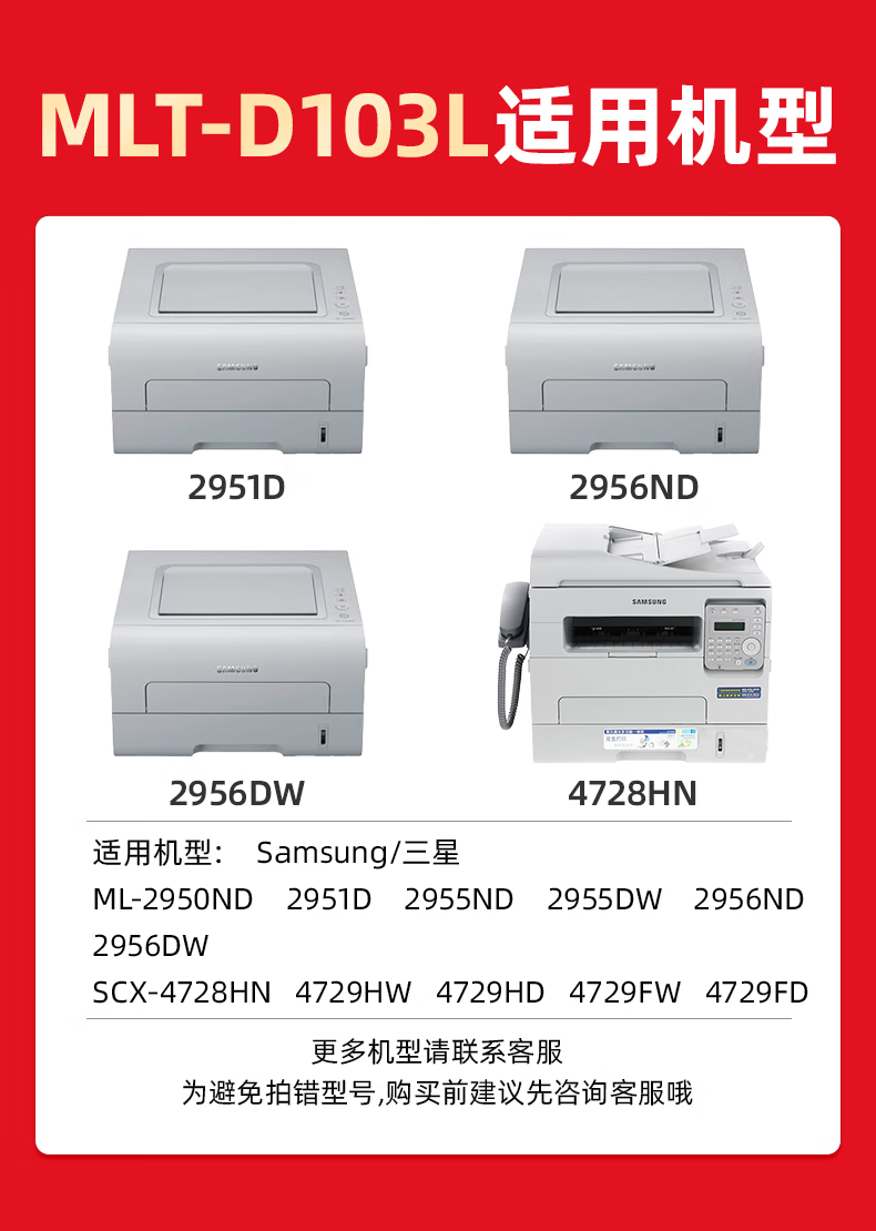 绘威MLT-D103L硒鼓 适用三星SCX-4728HN 4728FD 4729HD打印机粉盒ML2951D 2955DN 2956ND 4701ND硒鼓 易加粉