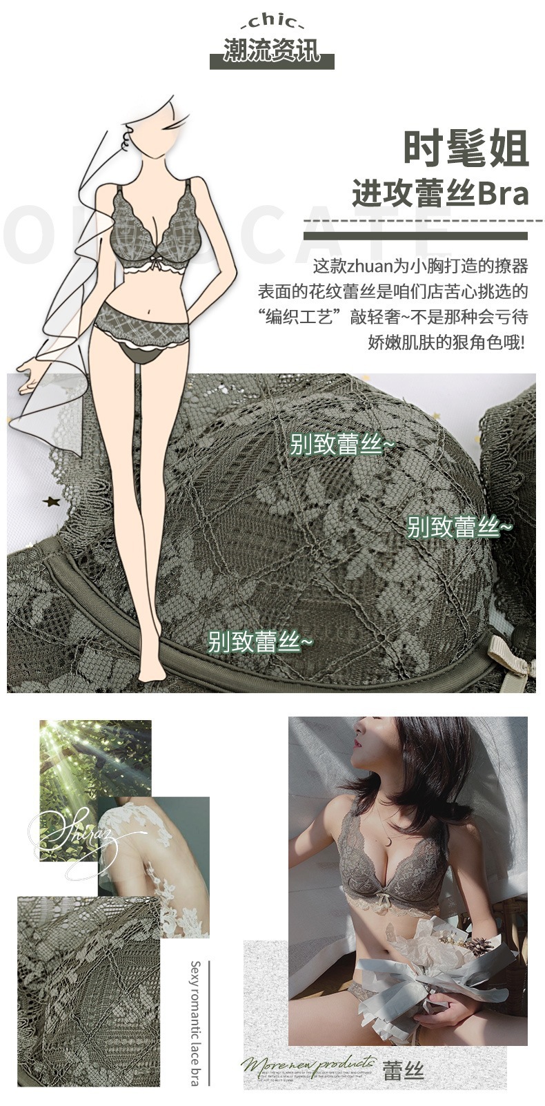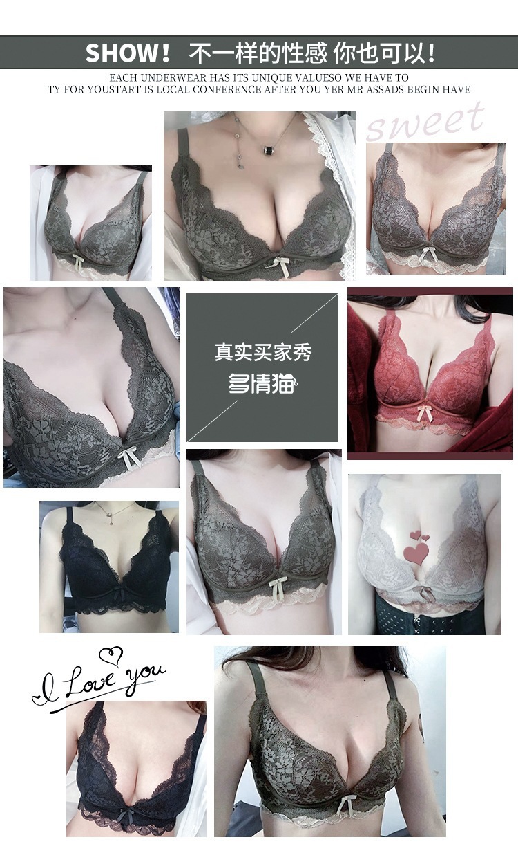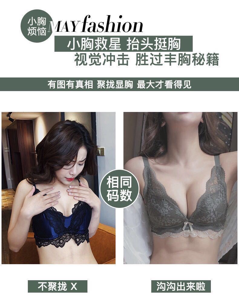 【单件/套装】玩转性感魅力,舒适呵护自由曲线,尽显曼妙身姿。蕾丝无钢圈设计,呵护小胸宝贝的柔嫩肌肤;聚拢加厚,精致呵护胸部线条;收副乳上托,展现完美曲线。性感聚拢,修副乳,让你的魅力四溢!
