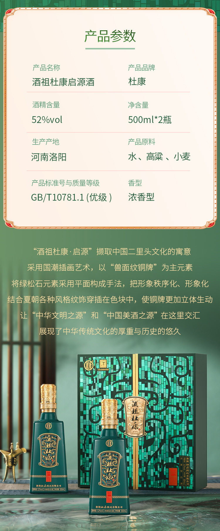 【二里头博物馆纪念酒】酒祖杜康启源酒52度500ml*2瓶浓香型白酒 二里头夏都遗址博物馆&酒祖杜康联合款