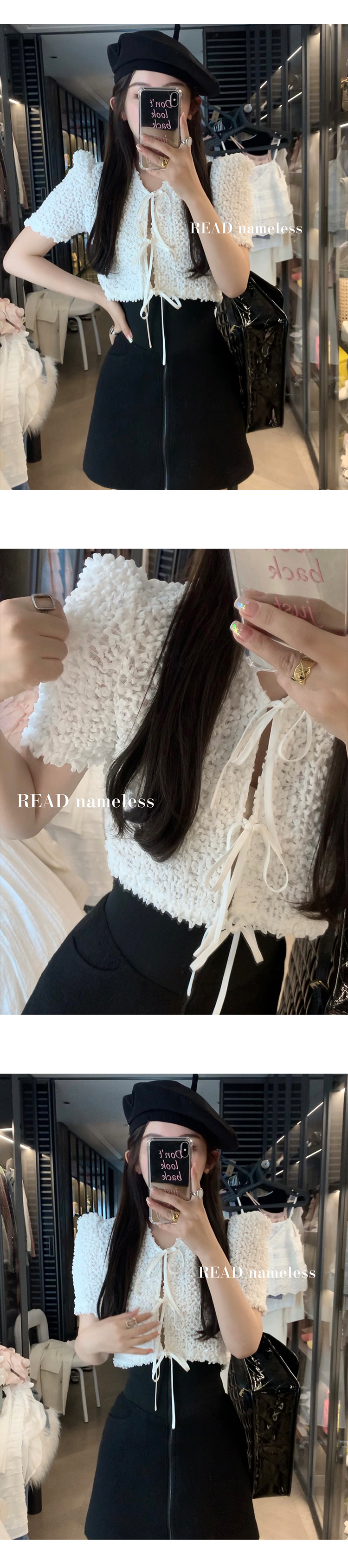 Read Nameless/白色特殊面料系带上衣