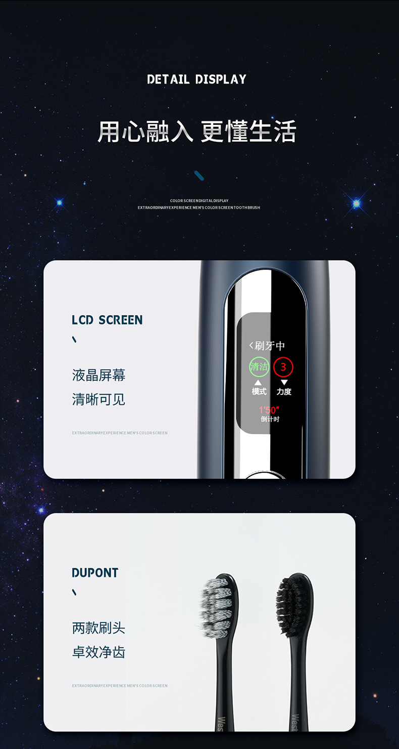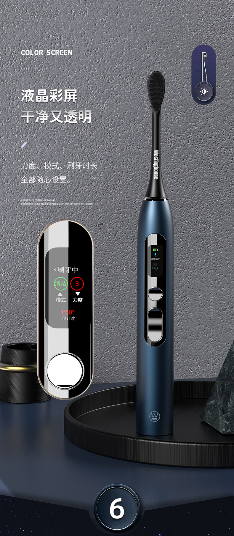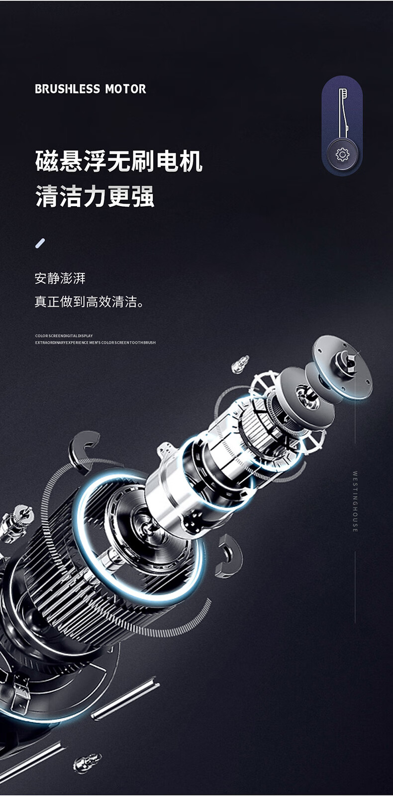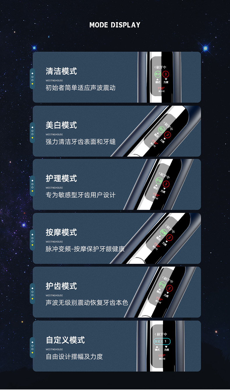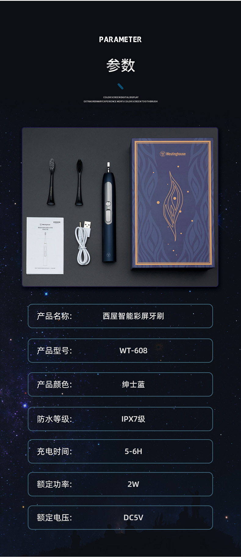西屋(Westinghouse)智显彩屏声波电动牙刷 WT-608