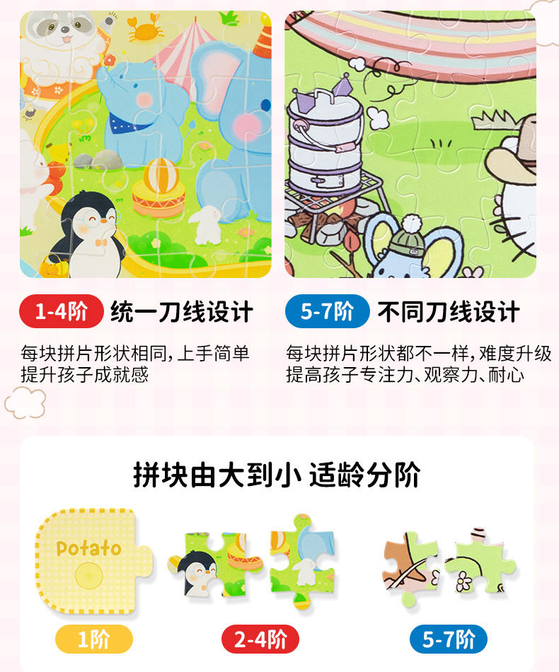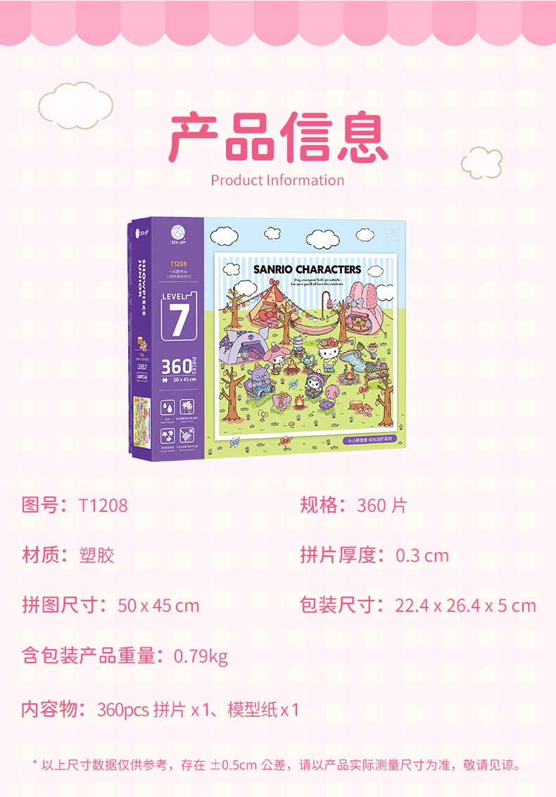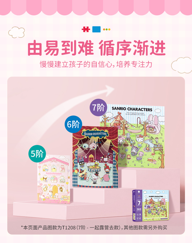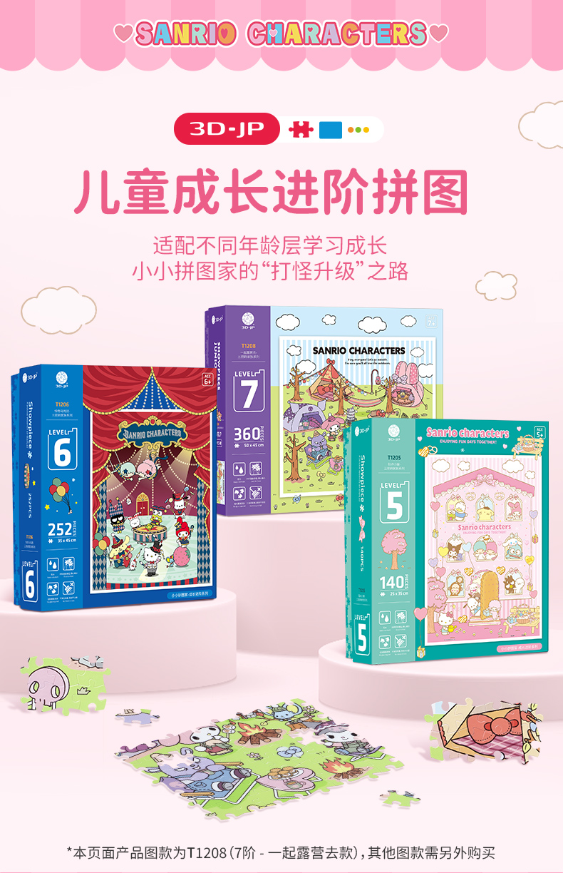 360片7阶 儿童拼图 T1208 一起露营去-三丽鸥家族系列 4岁到6岁塑料大块益智玩具