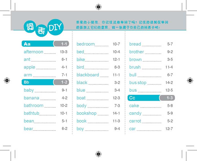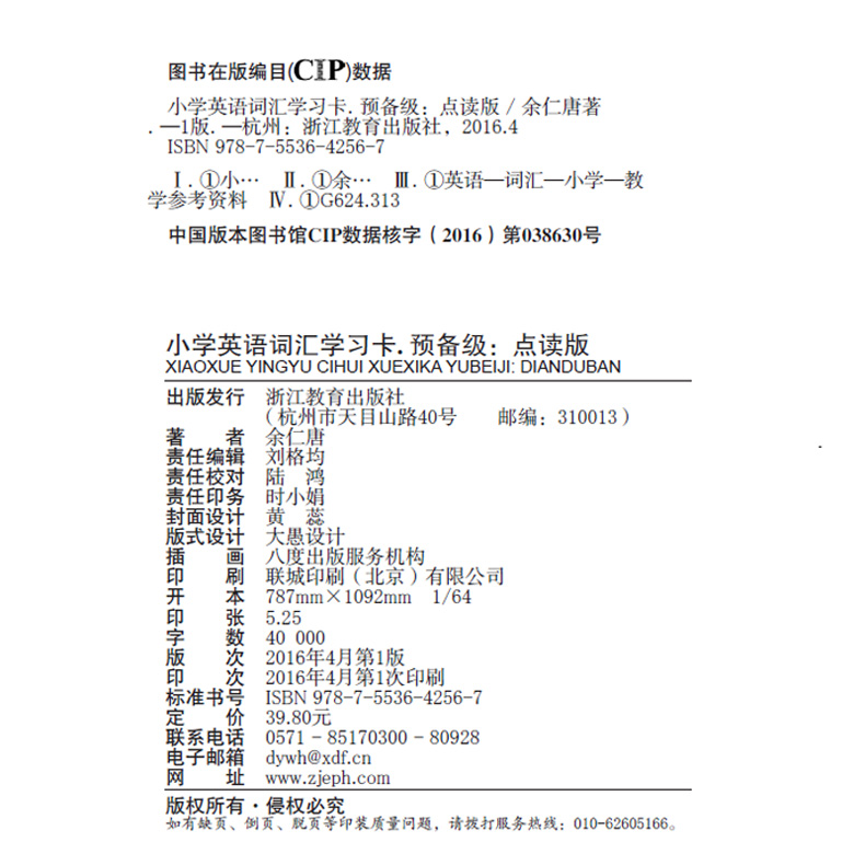 《小学英语词汇学习卡》专为5~12岁的中国小学生编写,共收词935个,涵盖90%以上的小学英语新*标及剑桥少儿英语考试词汇,能全面满足小学生英语学习及应试之需。