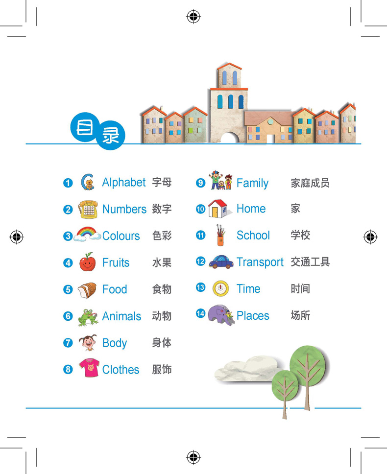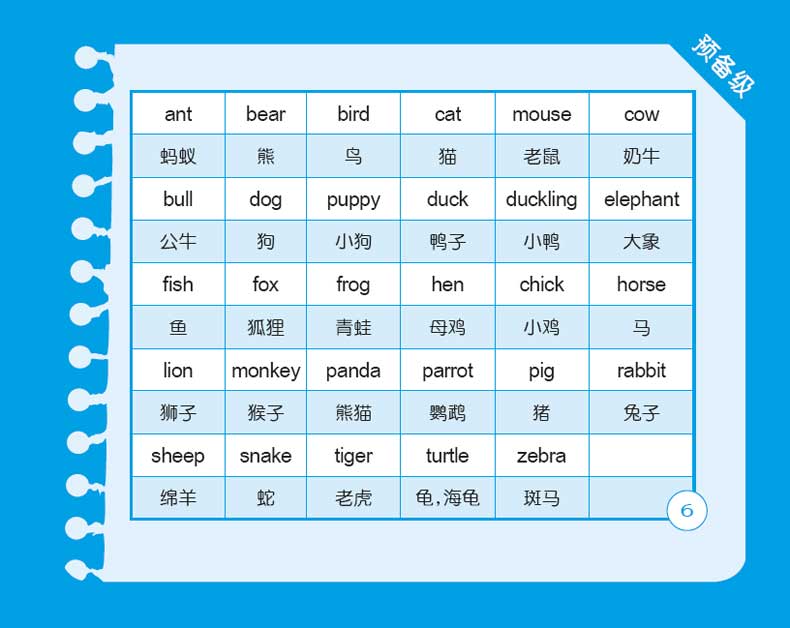 预备级含14个主题218个词,适合小学三年级以下5~9岁少儿使用。