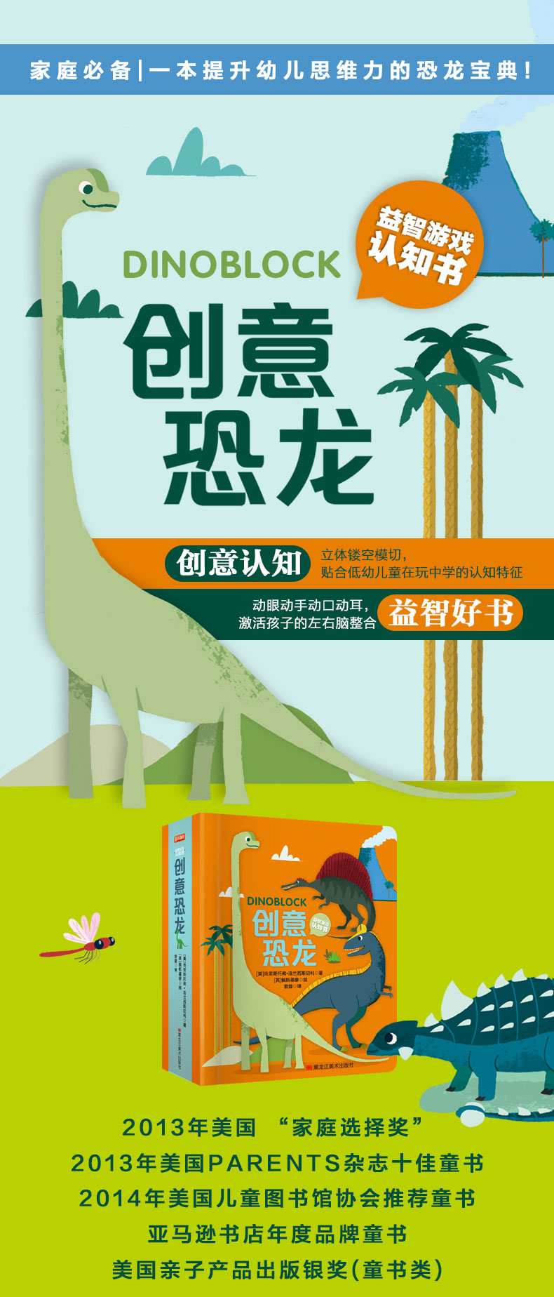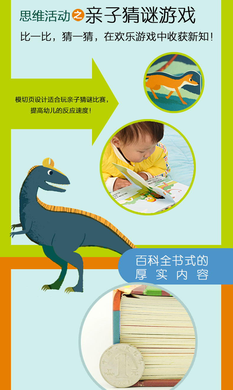 创意恐龙益智游戏认知0-4岁幼儿启蒙中英双语恐龙认知动眼动手左右脑开发思维训练观察力百科全书绘本立体洞洞翻翻撕不烂 做旧工艺