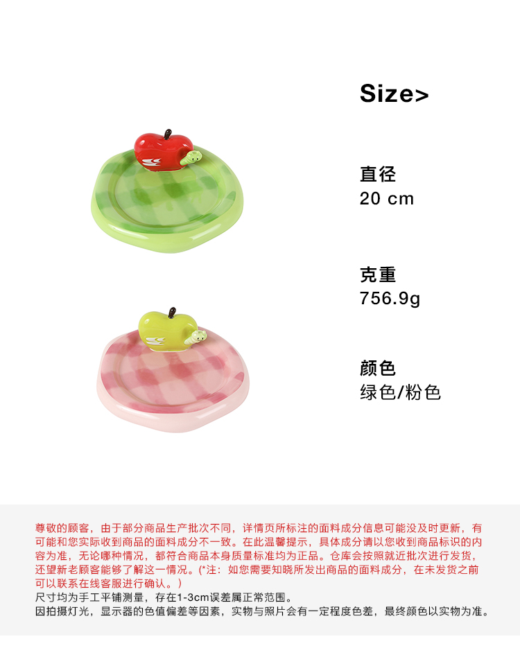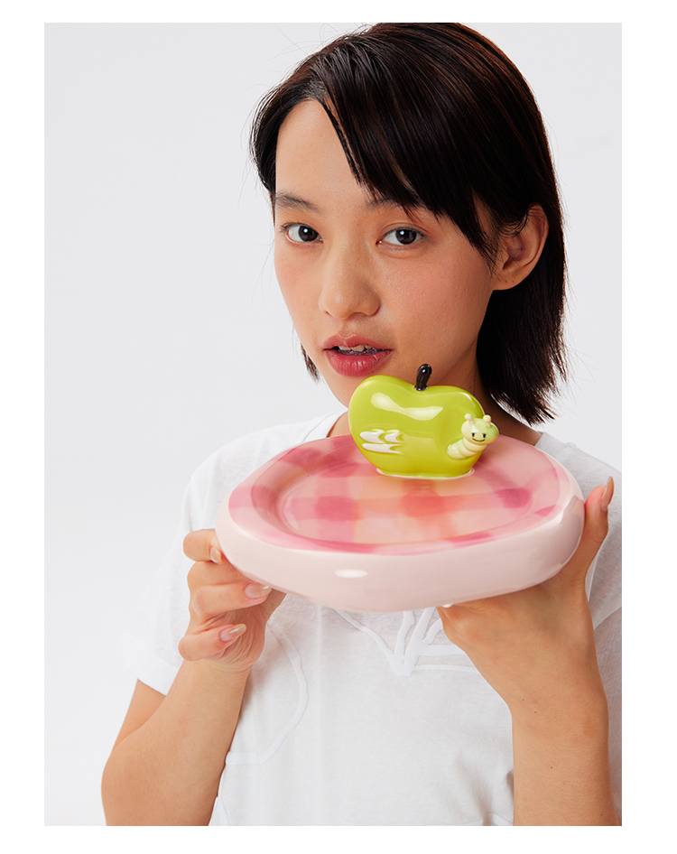 CryingCenter 苹果虫格纹陶瓷盘餐具碟子 哭喊中心