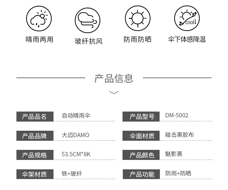 大迈魅影双玻纤自动晴雨伞-魅影黑
