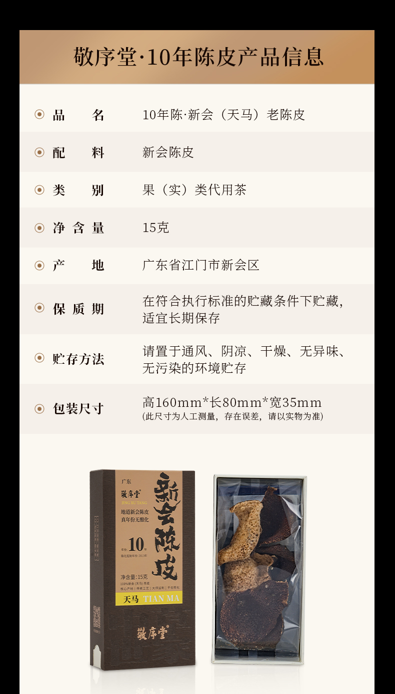 【敬序堂】(10年)天马(黄色)新会陈皮(品鉴装)15g