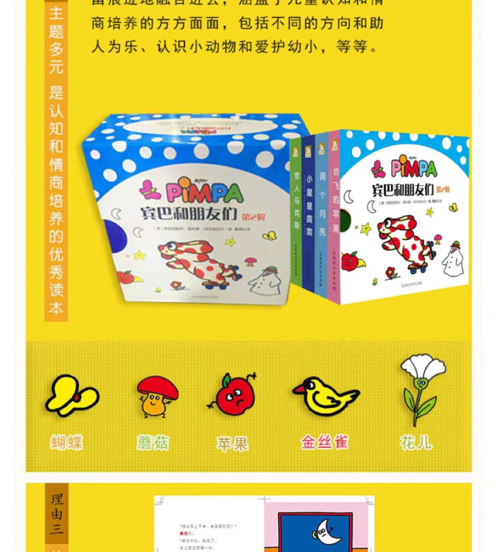 《宾巴和朋友们·第2辑》系列一共四本,是由意大利引进的儿童情绪管理绘本。贴近生活的精美的图片与简洁生动的文字相结合,将原本深奥的社会、人生和自然道理生动有趣地揭示了出来。
