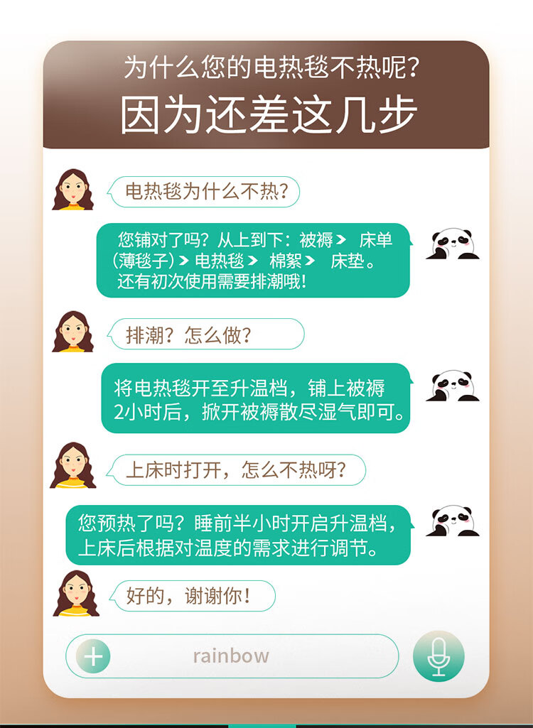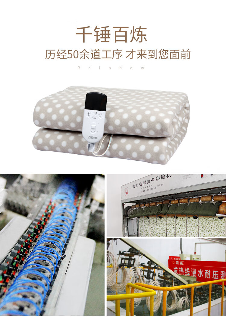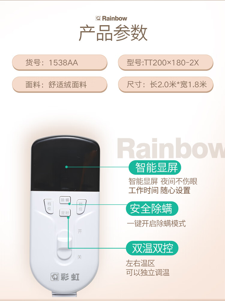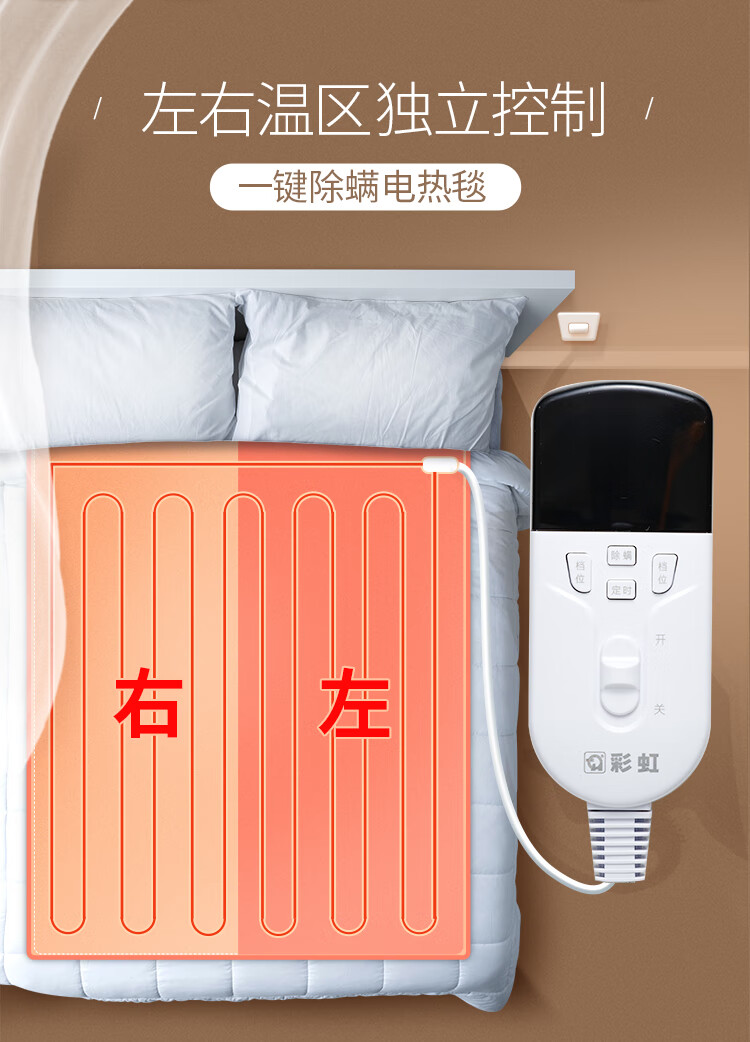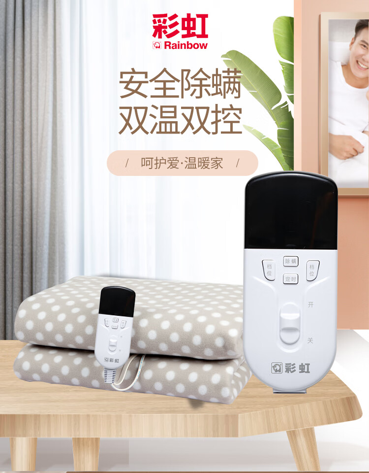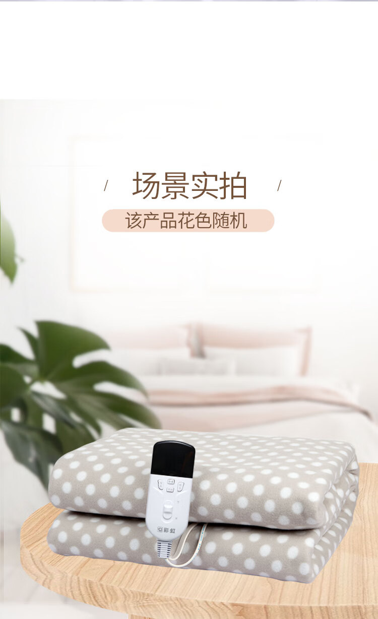 彩虹 全线路安全保护双控双温电热毯(特大宽幅)舒适绒2米*1.8米花色随机1538AA