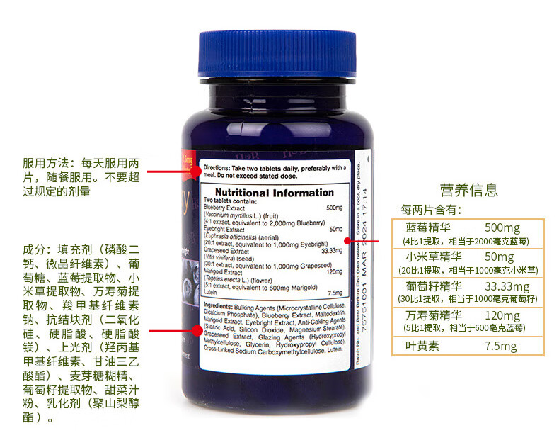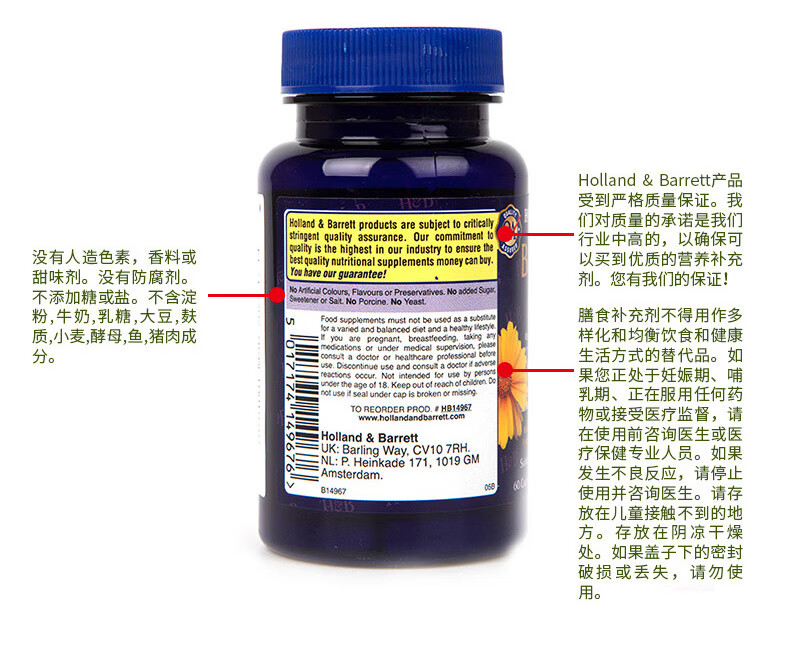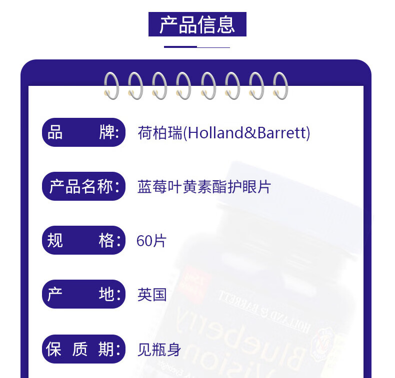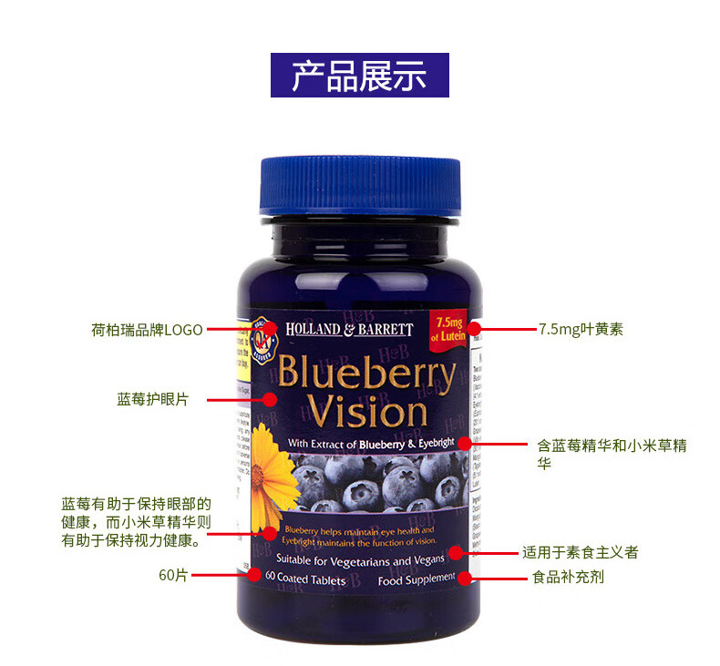 【保税仓】HollandBarrett荷柏瑞护眼蓝莓叶黄素酯护眼片60片
