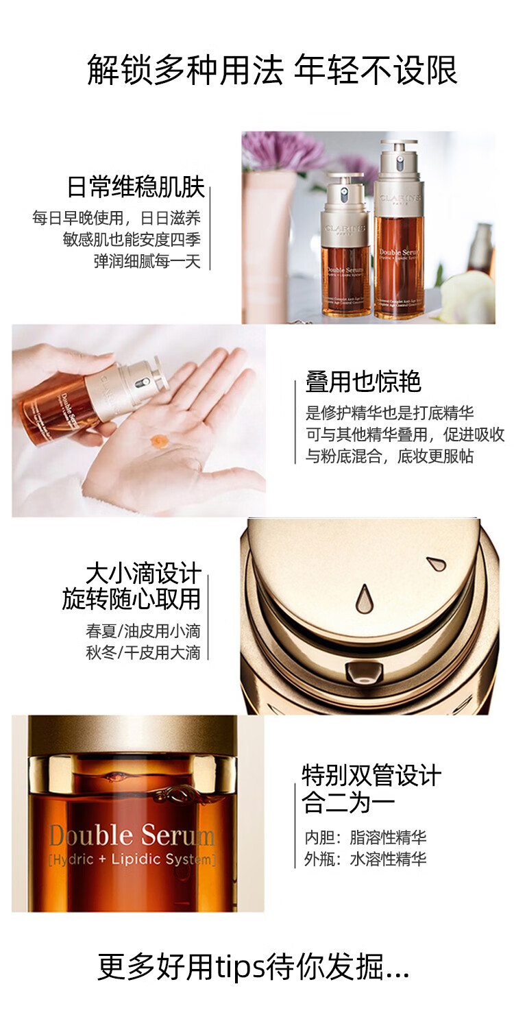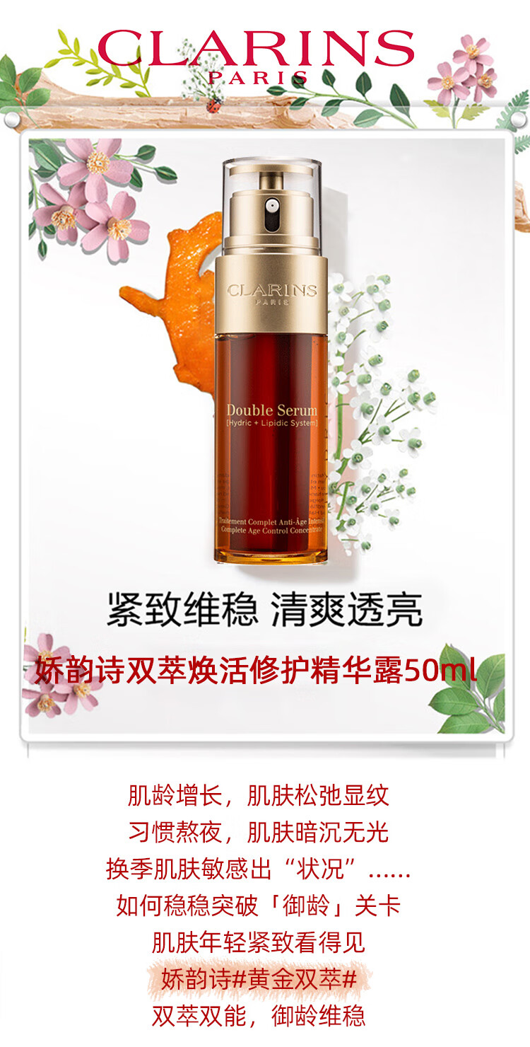 娇韵诗双萃焕活修护精华露50ml 控油保湿紧致修护维稳护肤品