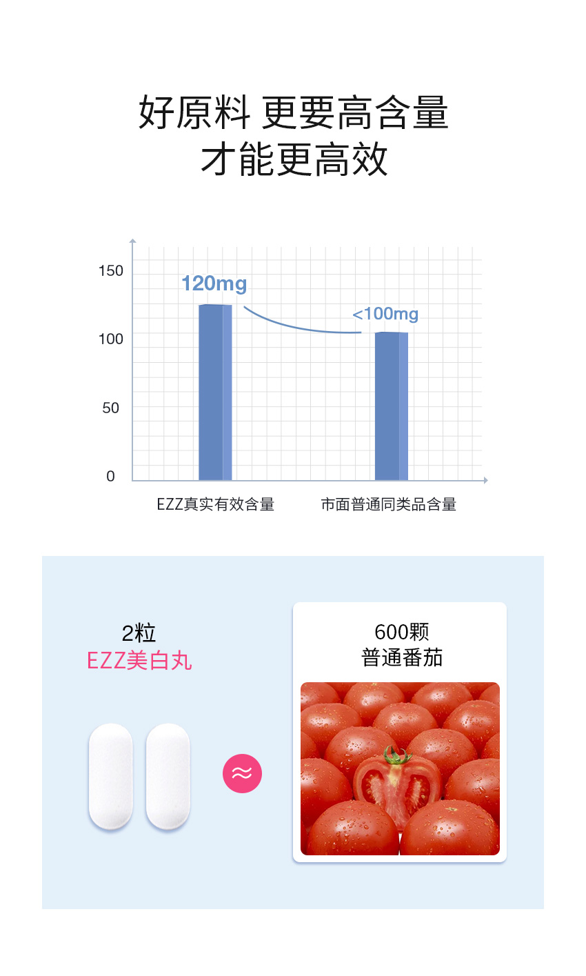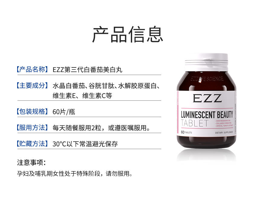EZZ白番茄谷胱甘肽片美白丸 60粒/瓶【2026.2】