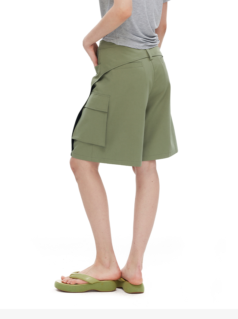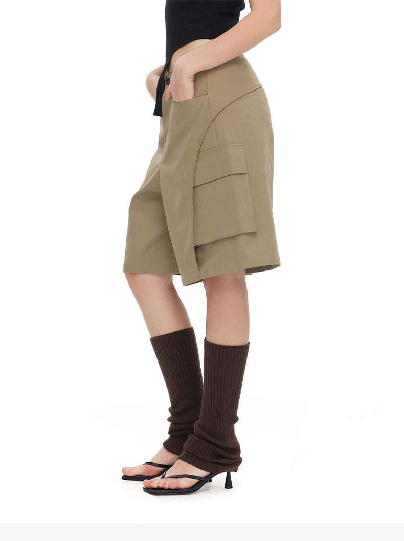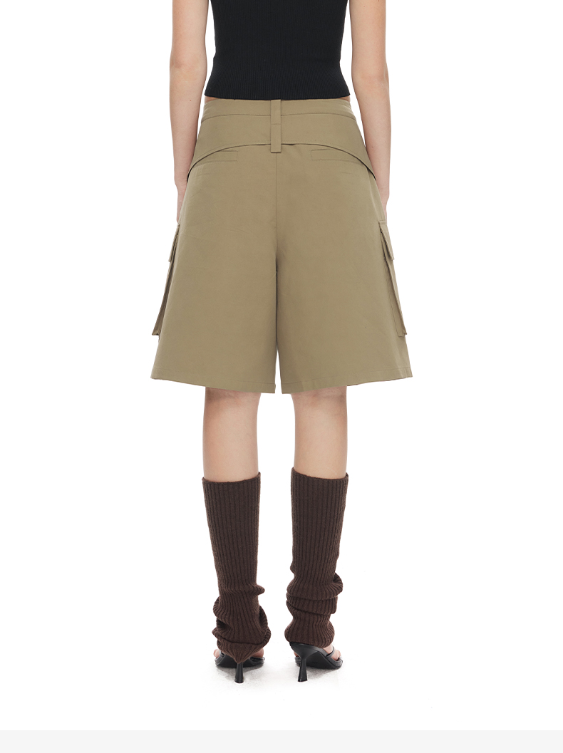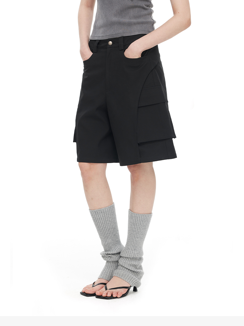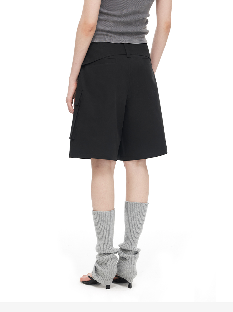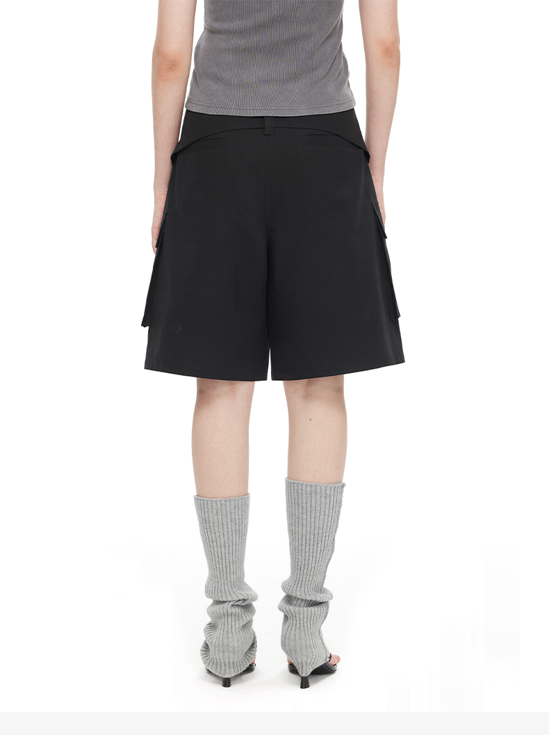 NUTH宽松阔腿搭片设计感多口袋工装五分中裤