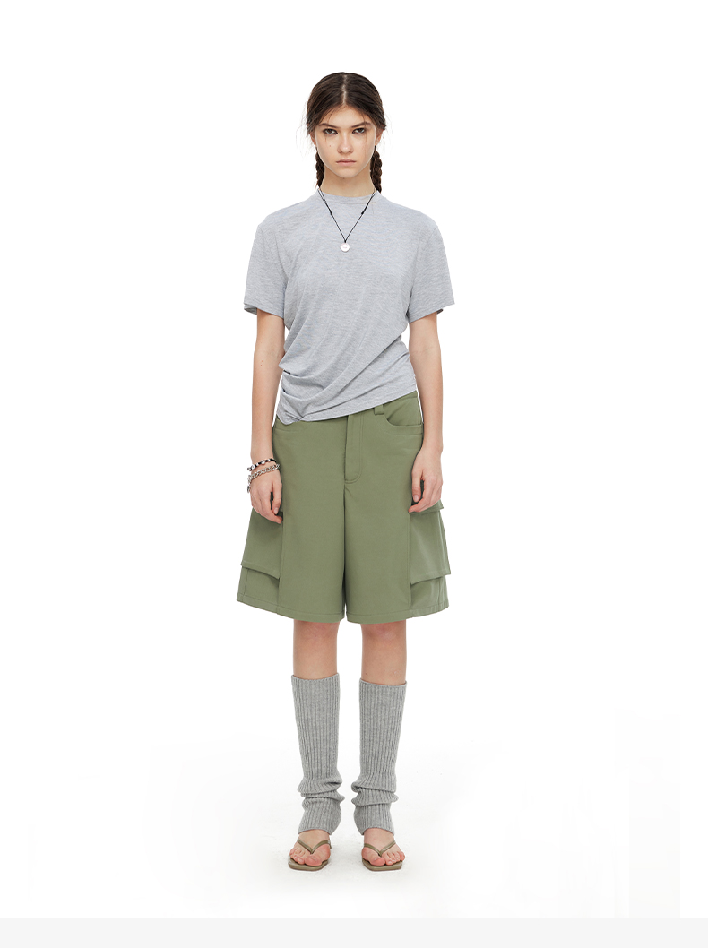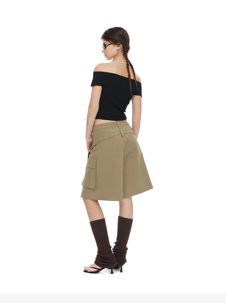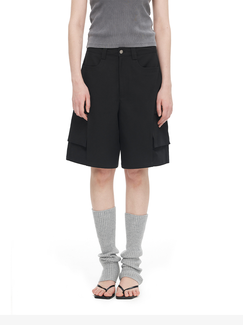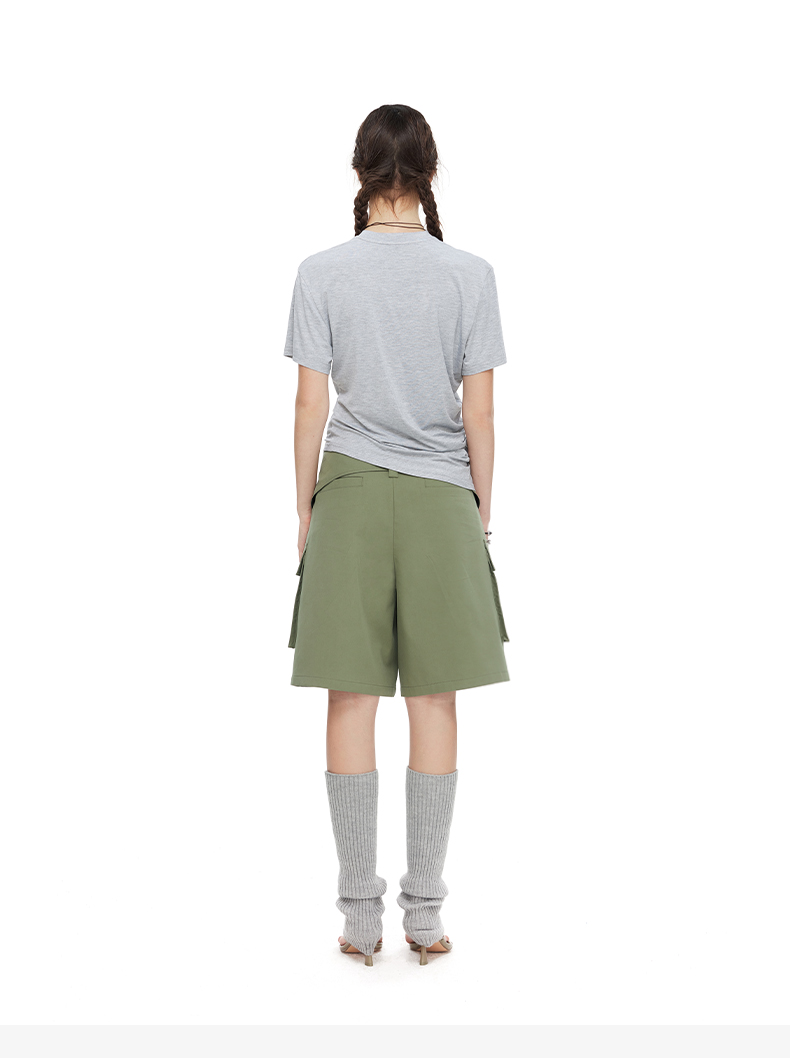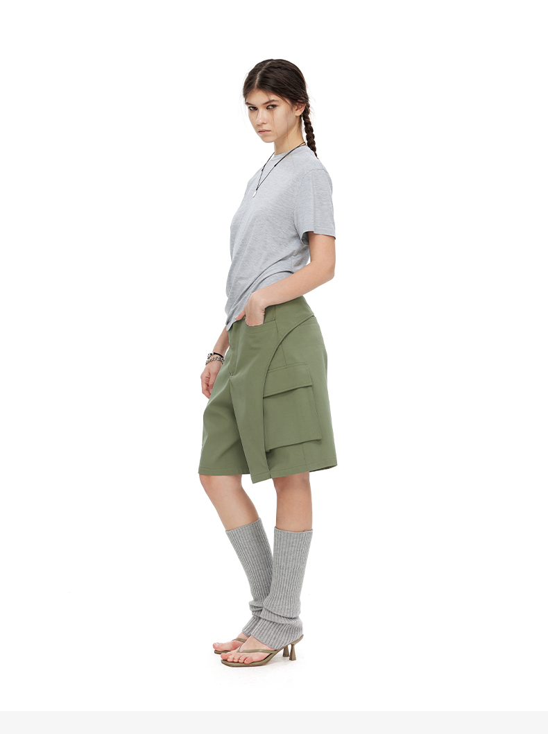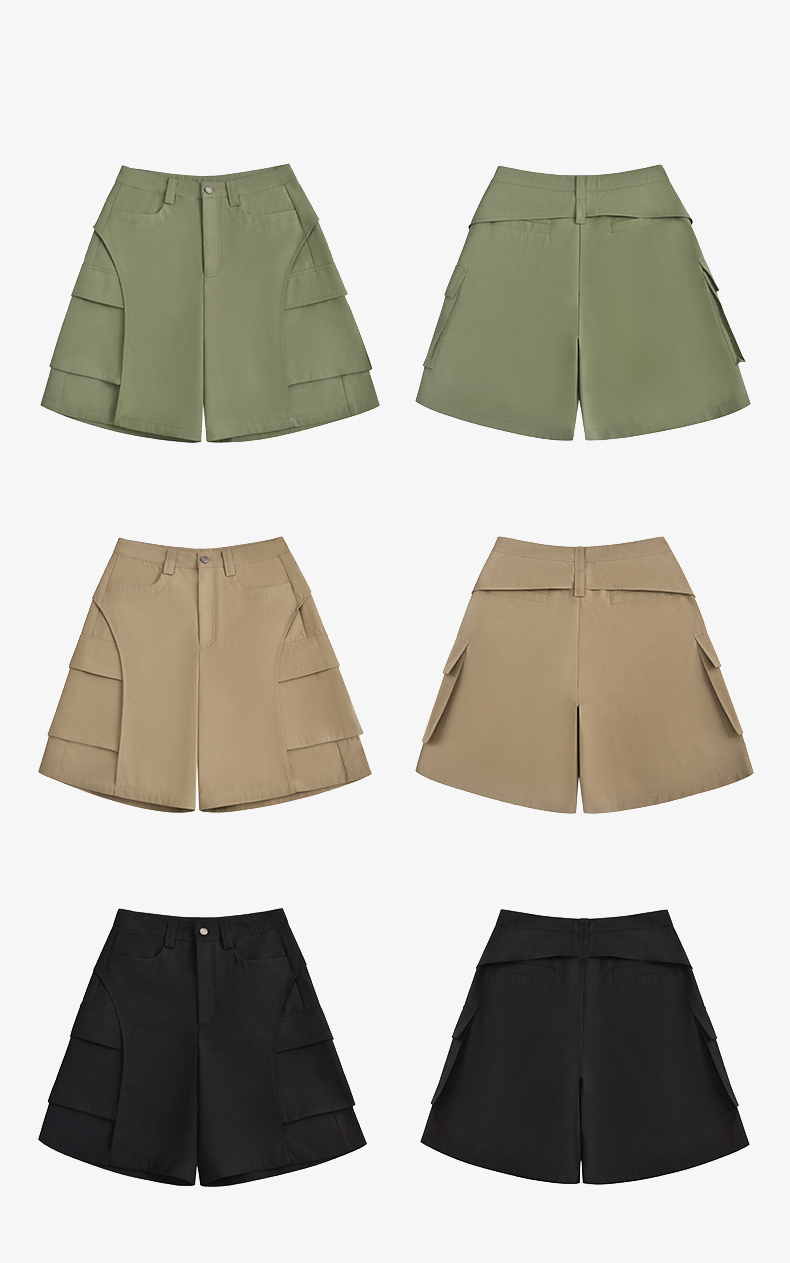 NUTH宽松阔腿搭片设计感多口袋工装五分中裤