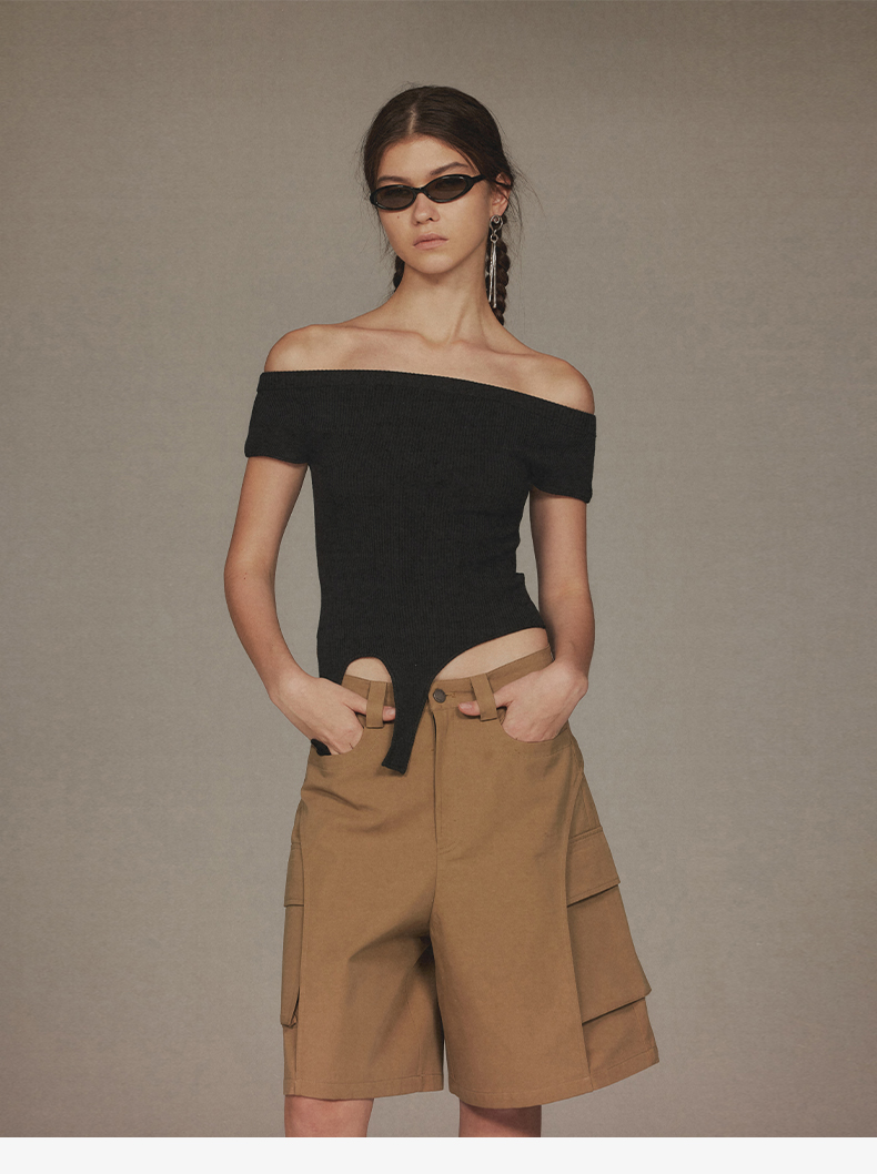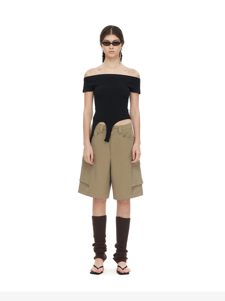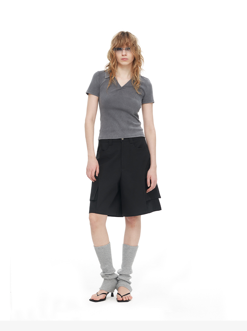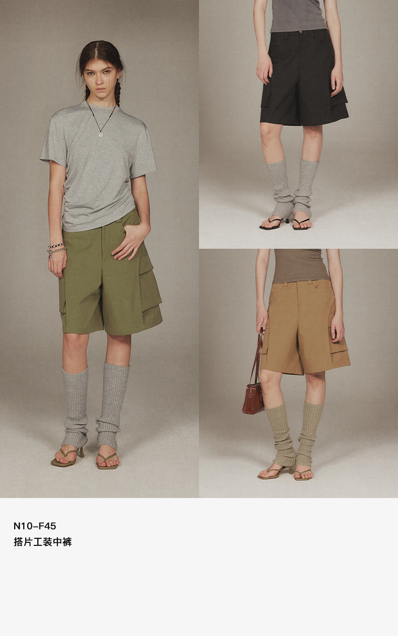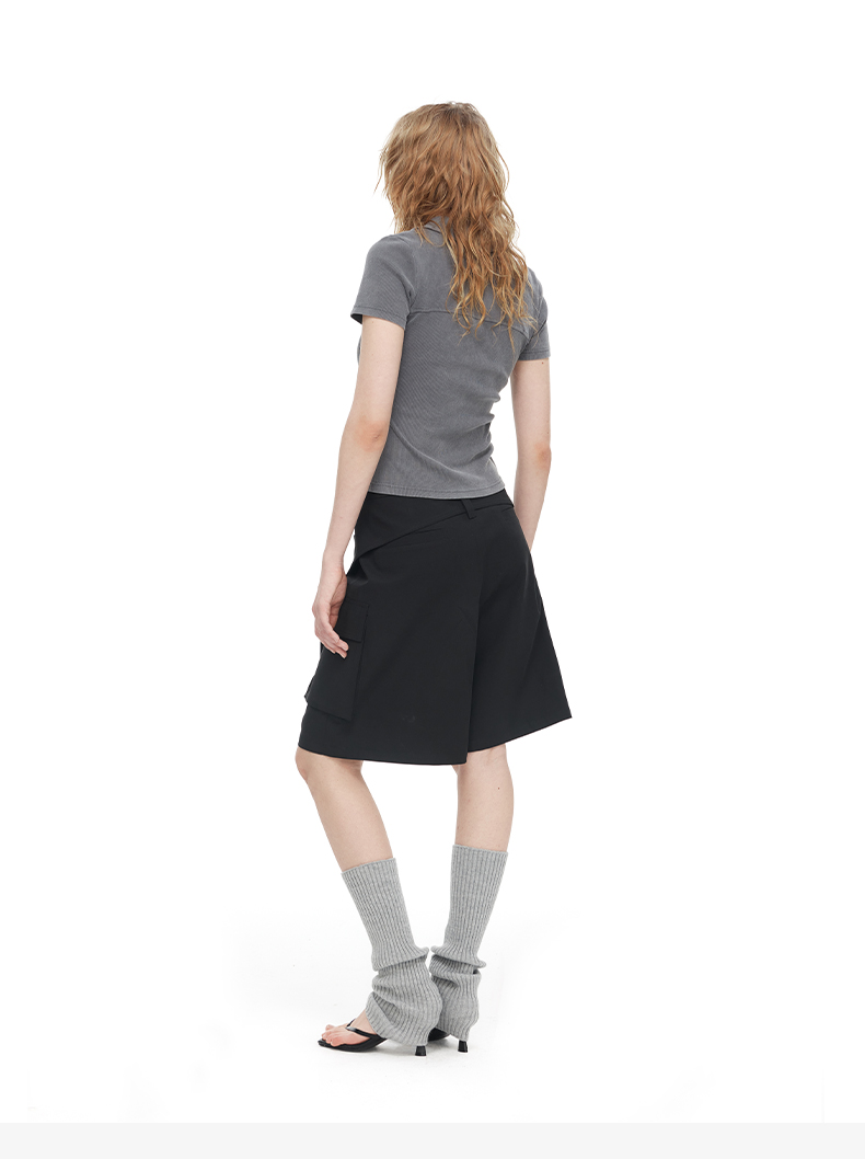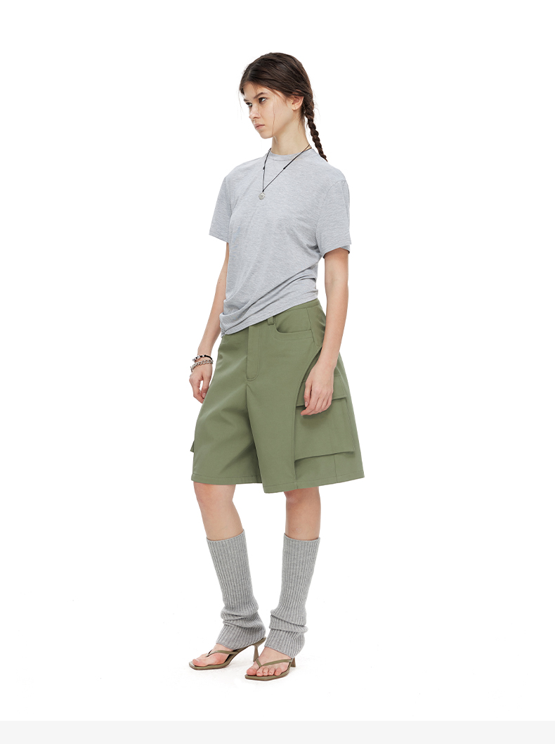 NUTH宽松阔腿搭片设计感多口袋工装五分中裤