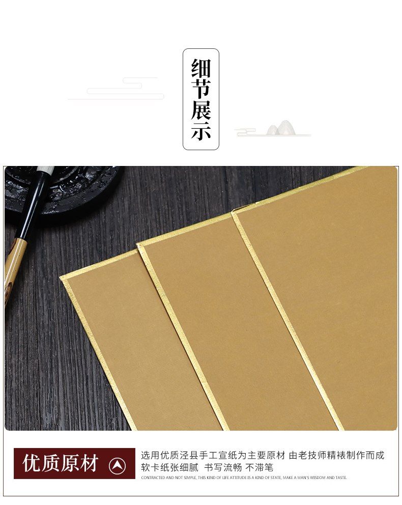 【庆学堂】金色包边生宣卡纸 深仿古 33*33cm 1包10张
