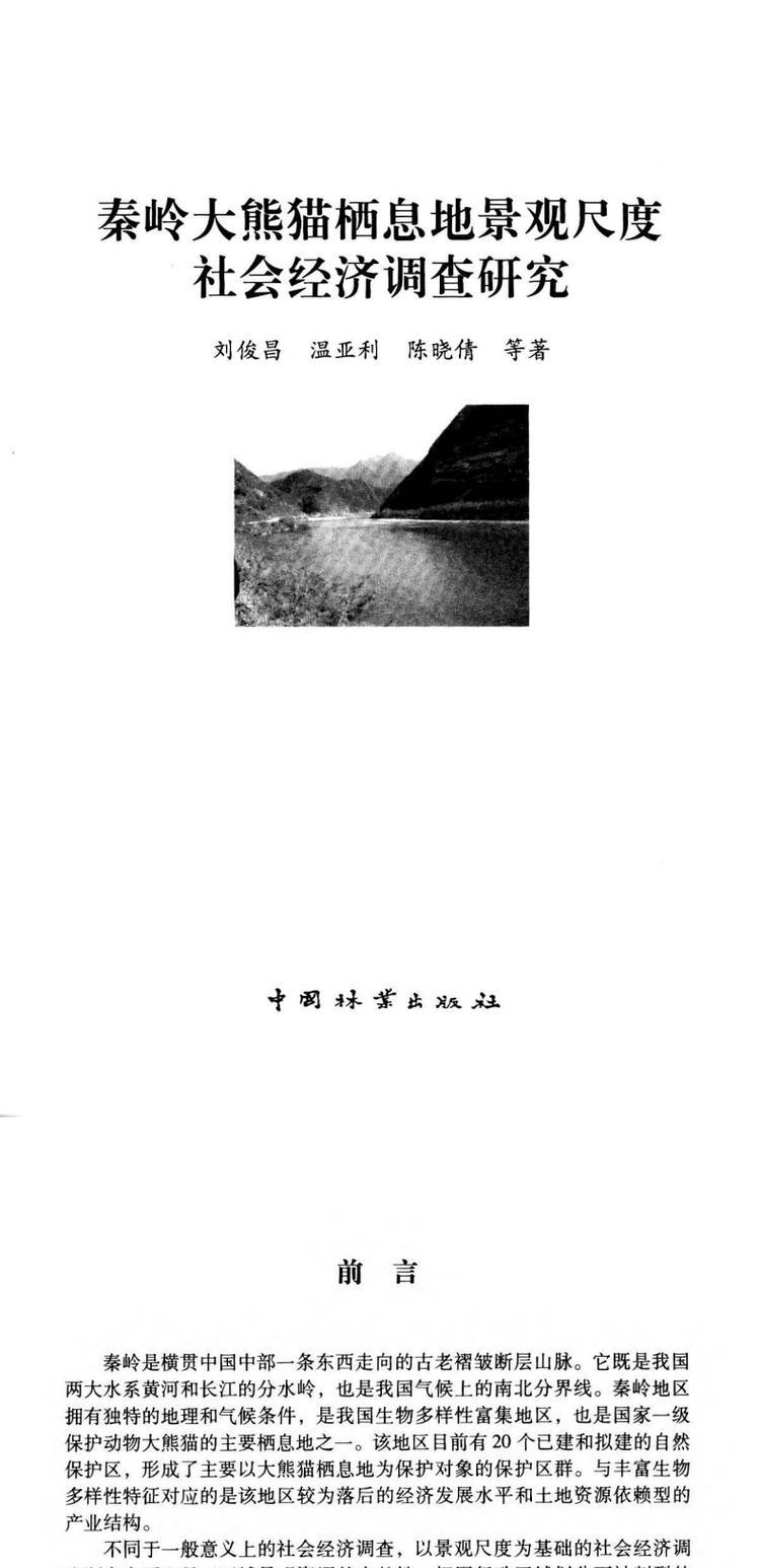 秦岭大熊猫栖息地景观尺度社会经济调查研究 中国林业出版社