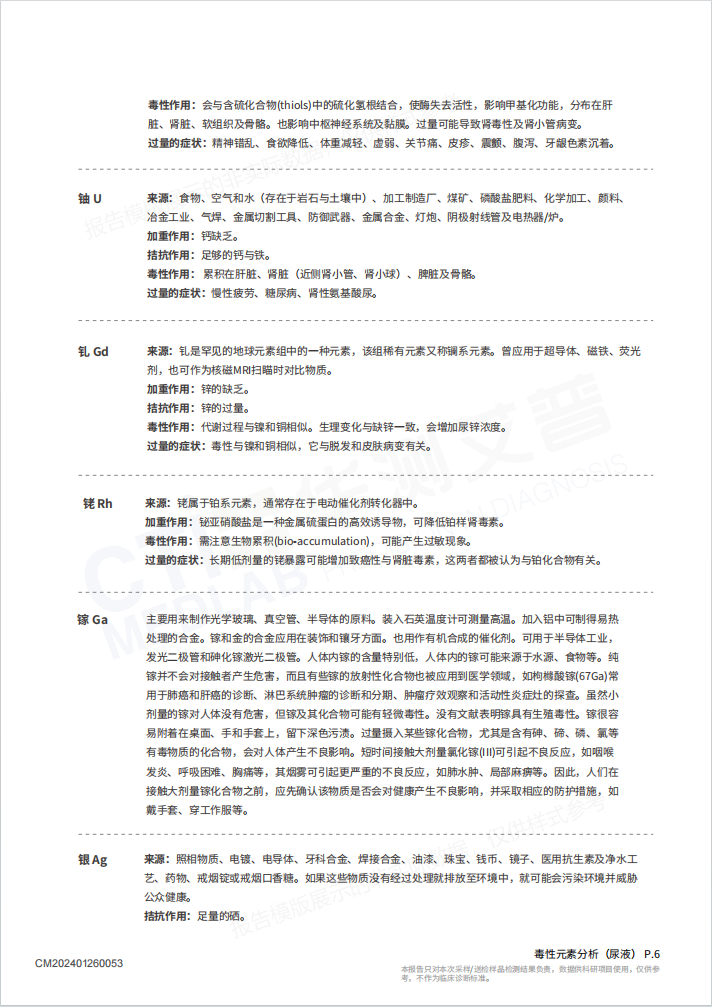 华测 毒性元素分析(尿液)