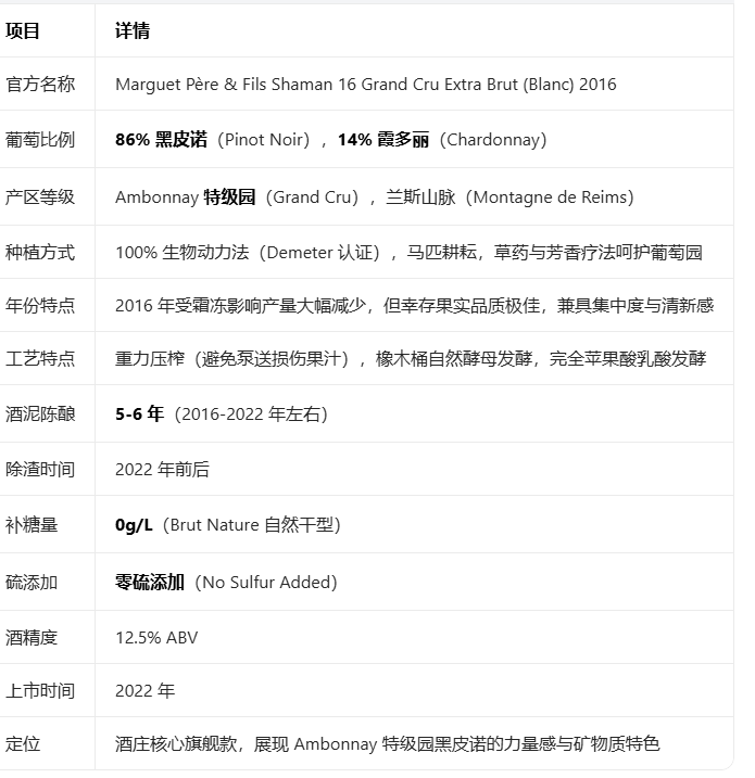 2016 Marguet Pere & Fils Shaman 16 Grand Cru 魔爵沙曼16年份香槟 2016