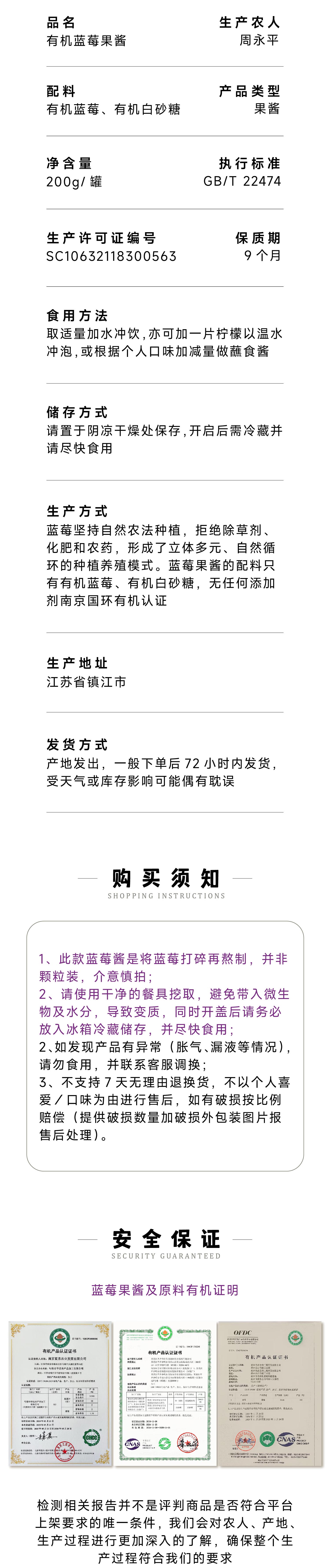 蓝莓山有机蓝莓酱 200g/罐 | 合作农友生产,产自南京,生产者:周永平 *【公平贸易农人定价】