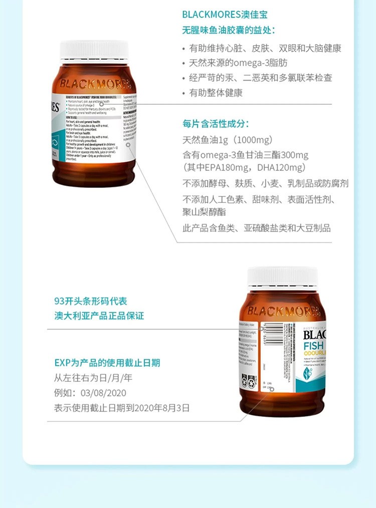 【保税仓】澳佳宝BLACKMORES无腥味深海鱼油400粒