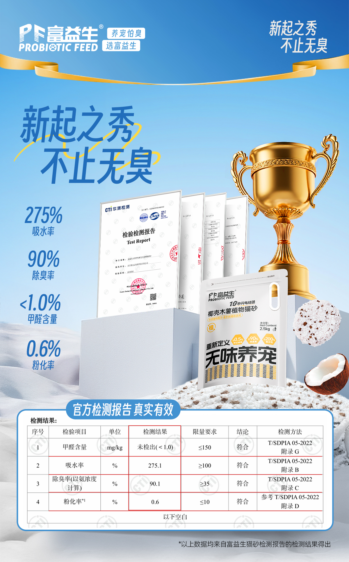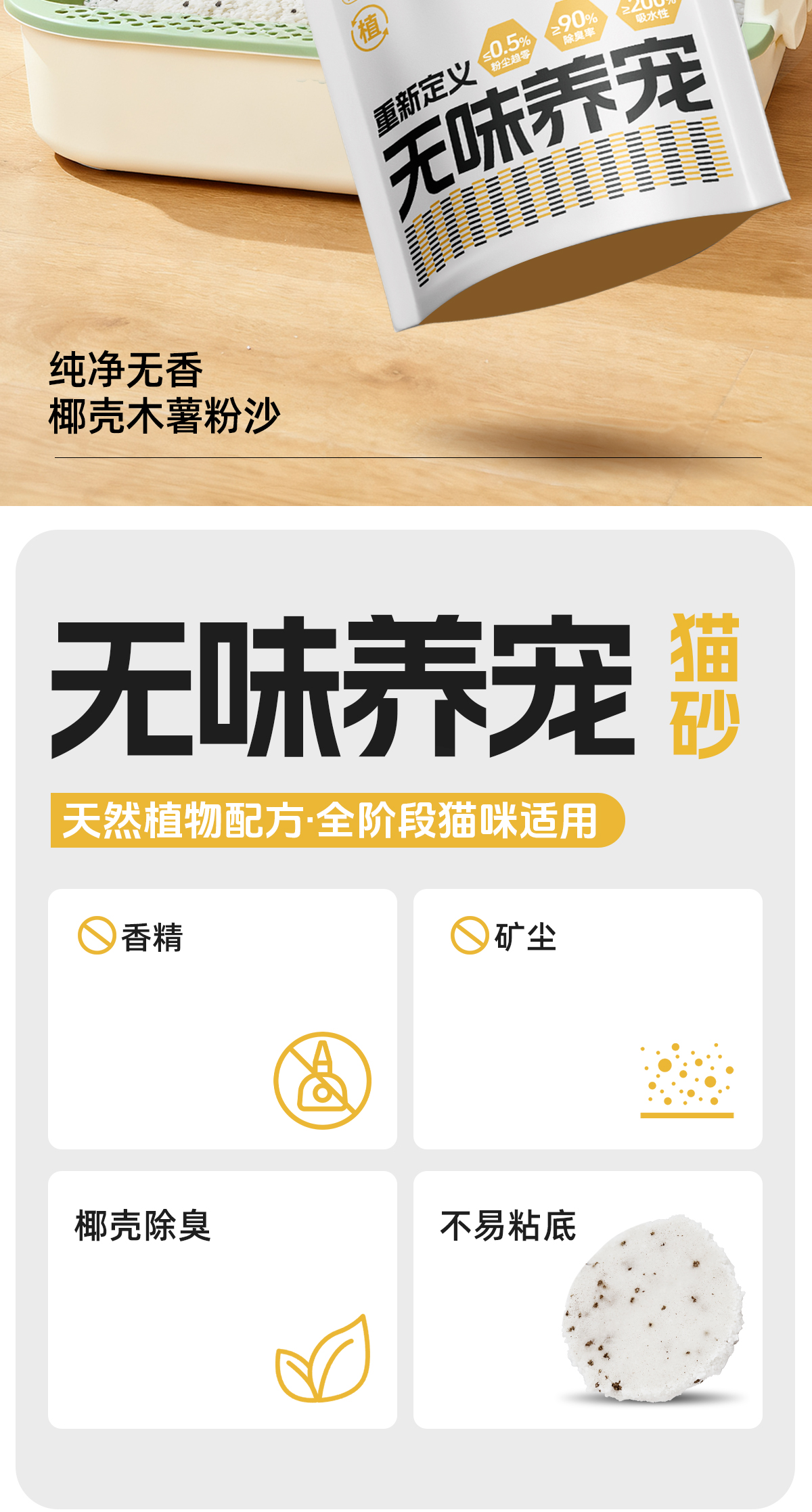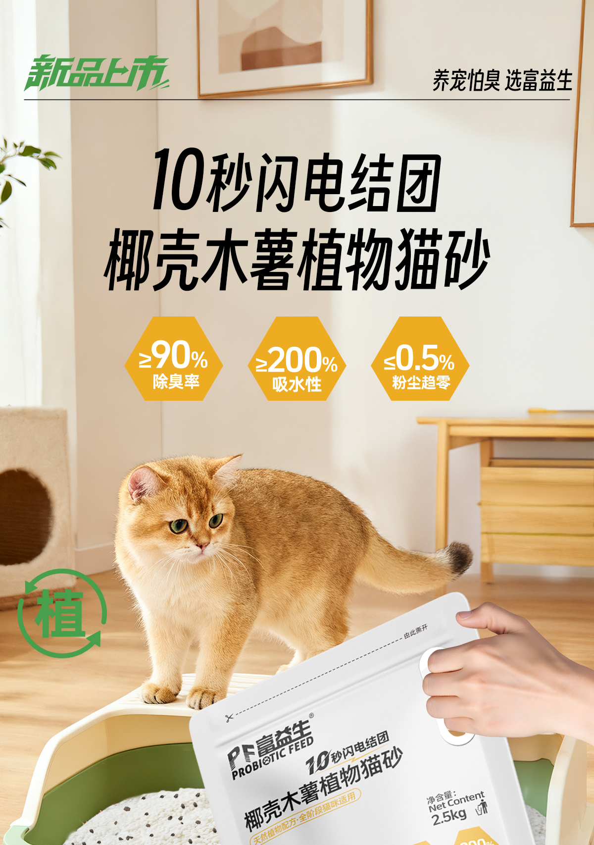 严选 | 富益生椰壳木薯猫砂 2.5kg/袋 除臭砂防臭无尘膨润土不沾底植物椰壳混合豆腐猫砂