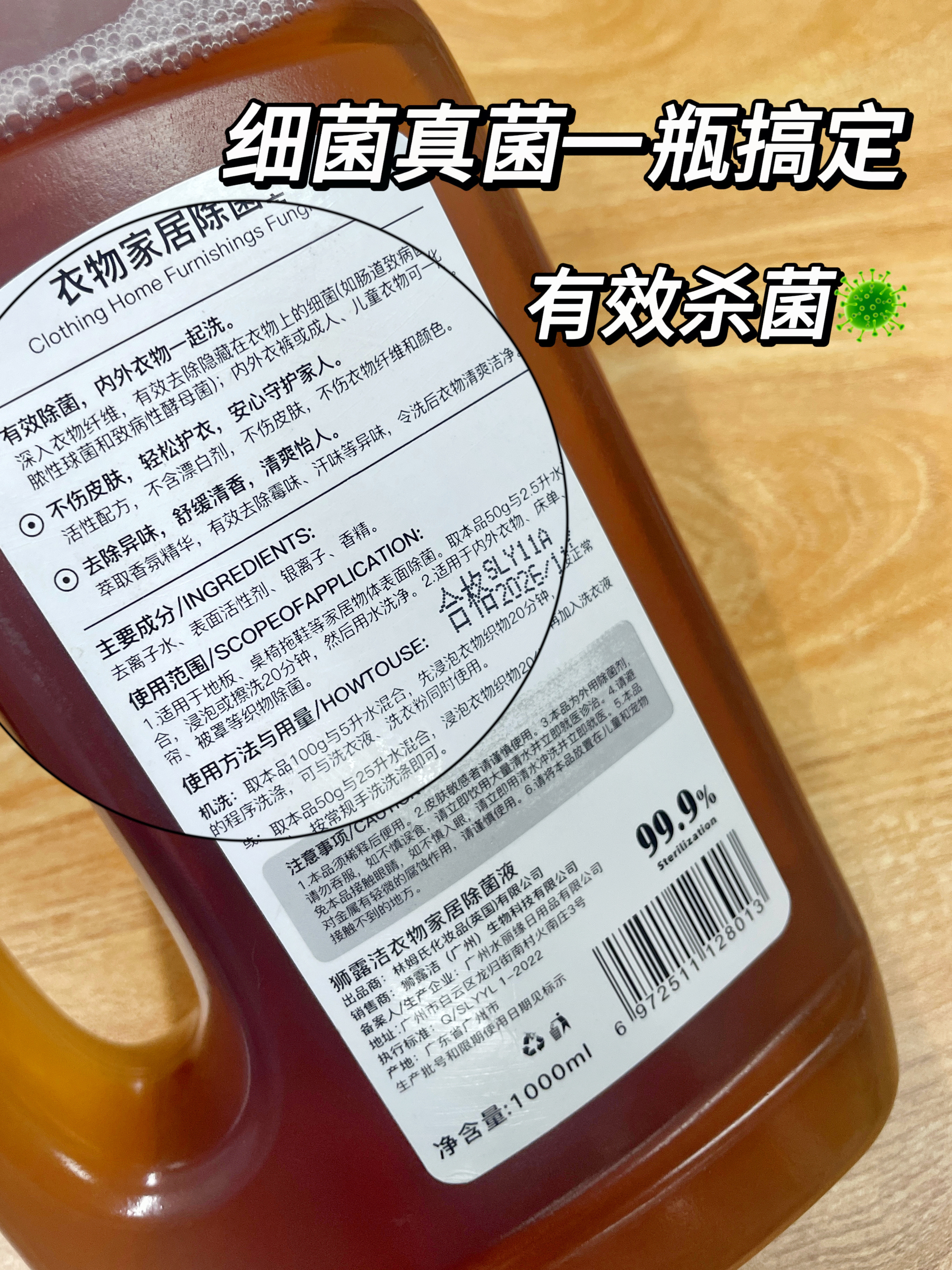 狮露洁衣物除菌液,👍不仅能消灭细菌,还能杀真菌!👍