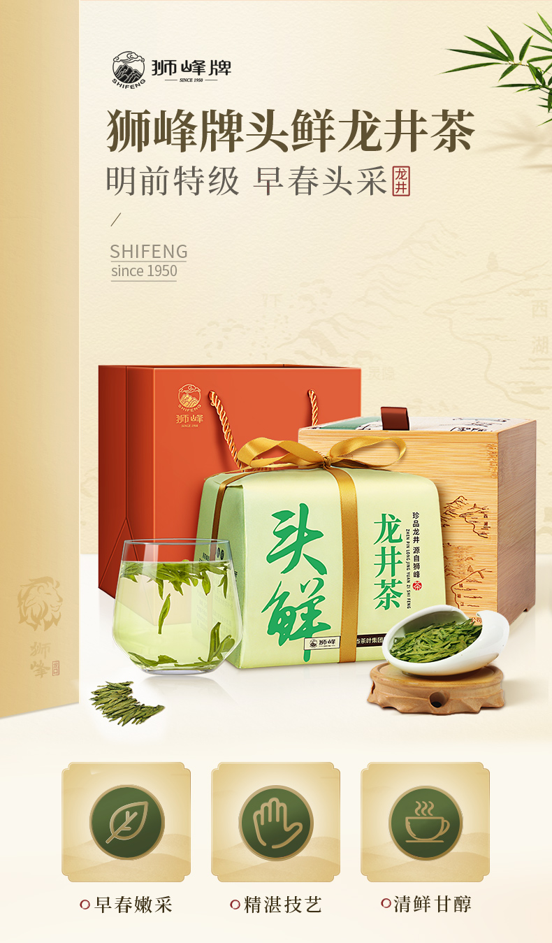 狮峰牌龙井茶江南赋优品头鲜竹盒250g.WN