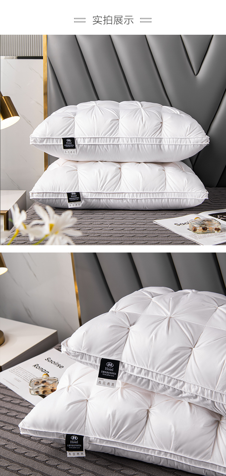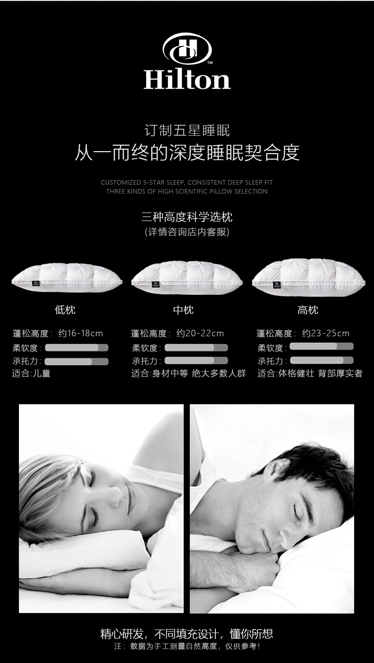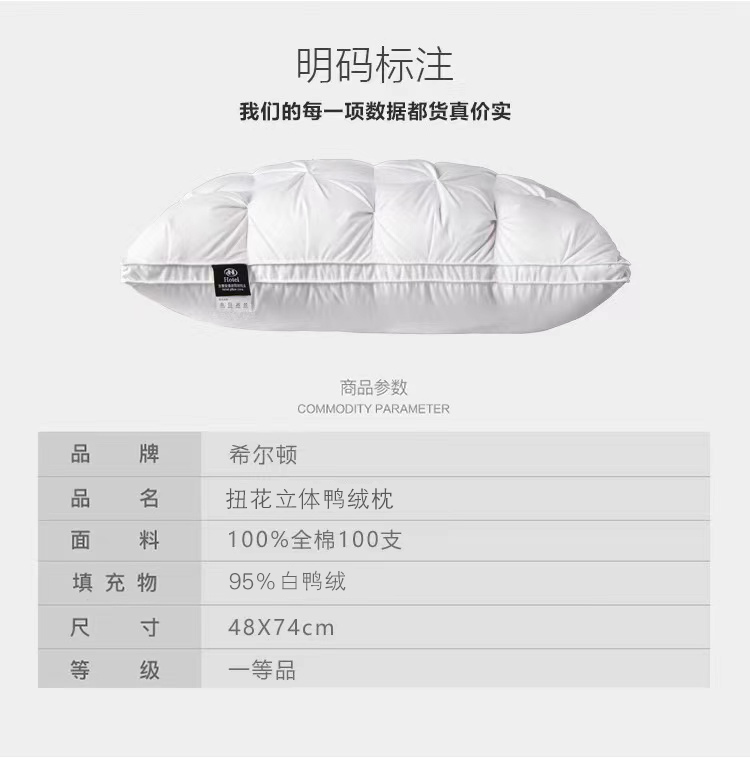 【现货48小时发】【希尔顿】酒店专用羽绒枕头家用护颈椎白鸭绒枕芯