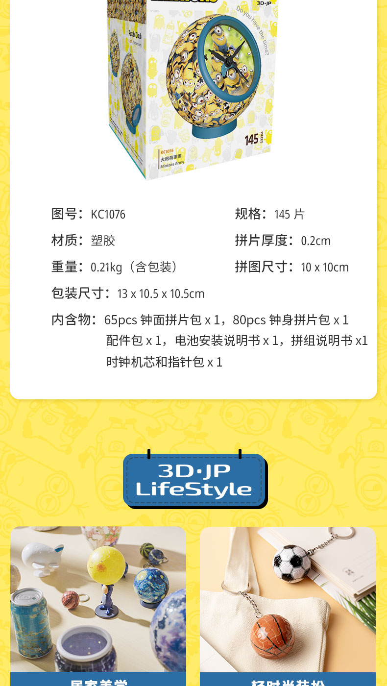 【折扣商品 不退不换】145片 桌面时钟拼图 塑料拼图KC1076 大眼萌军团