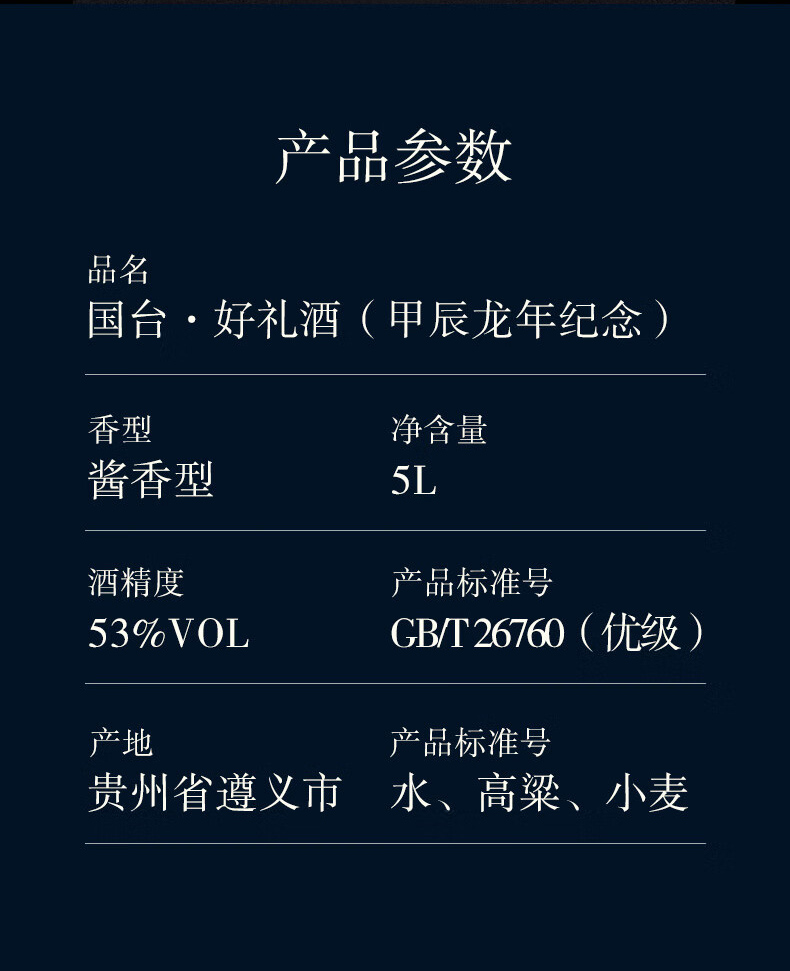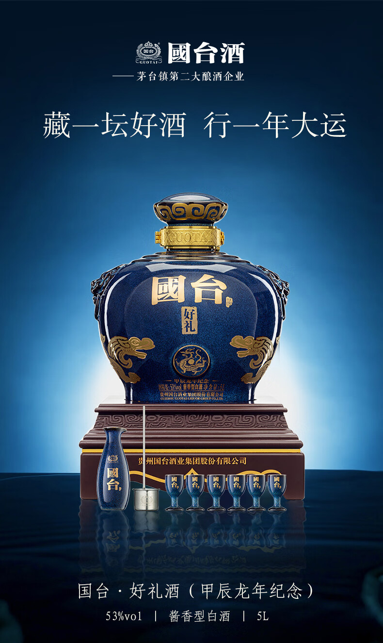 【预售】国台 好礼 甲辰龙年生肖纪念酒53度5L 53度 5000mL 1坛