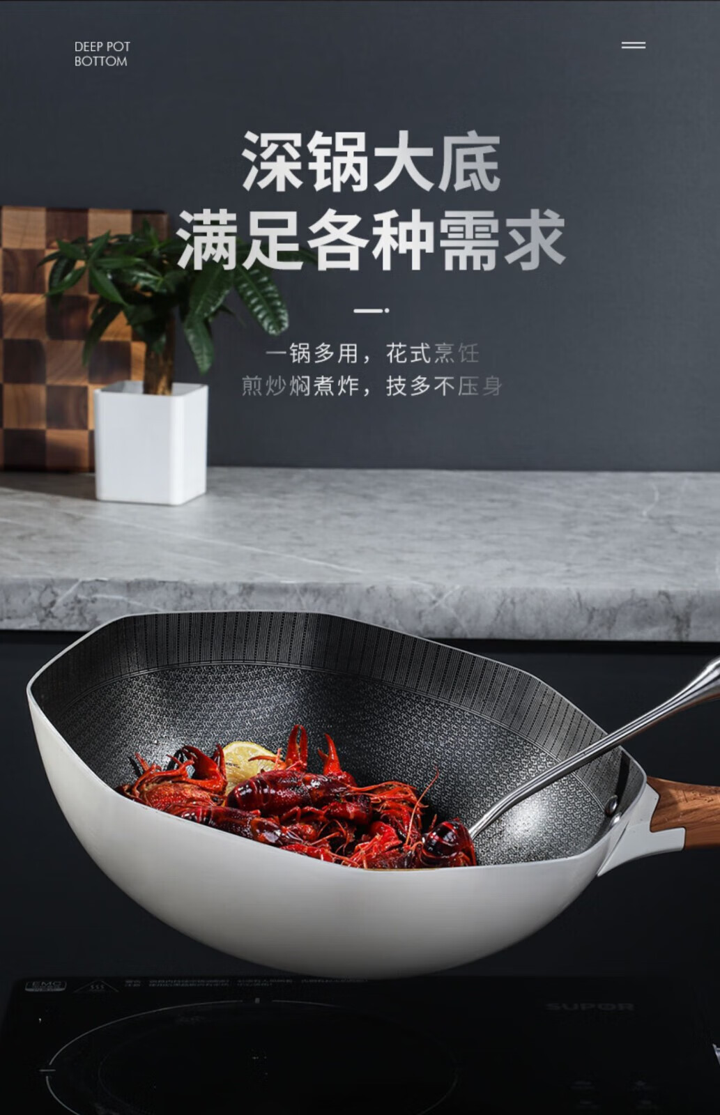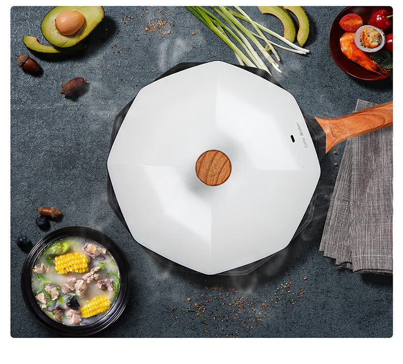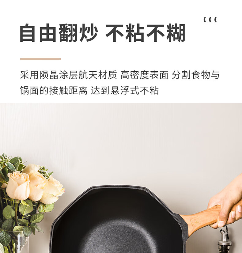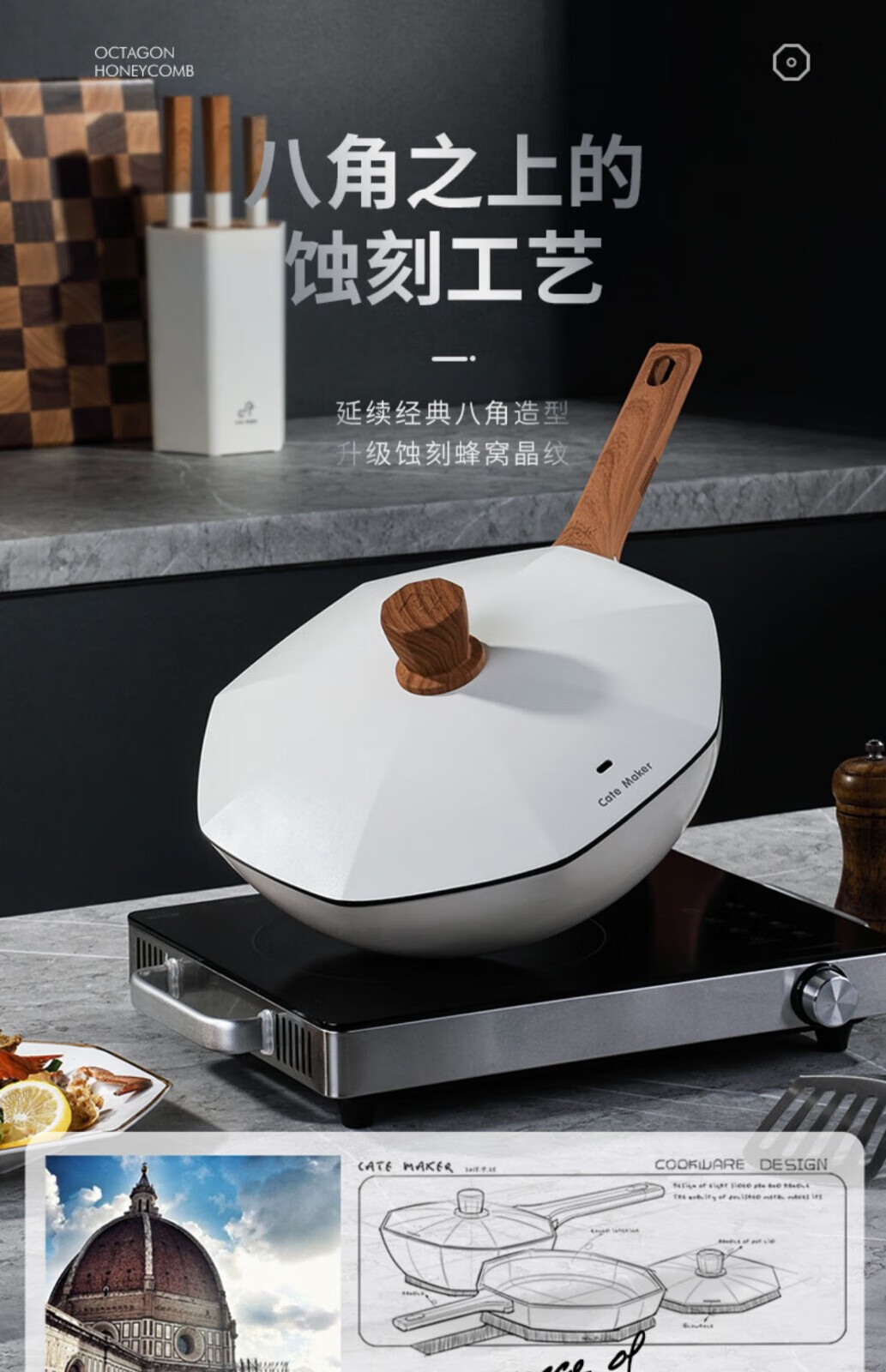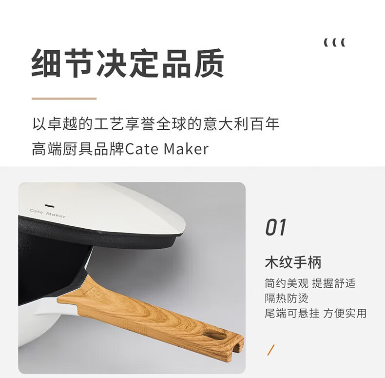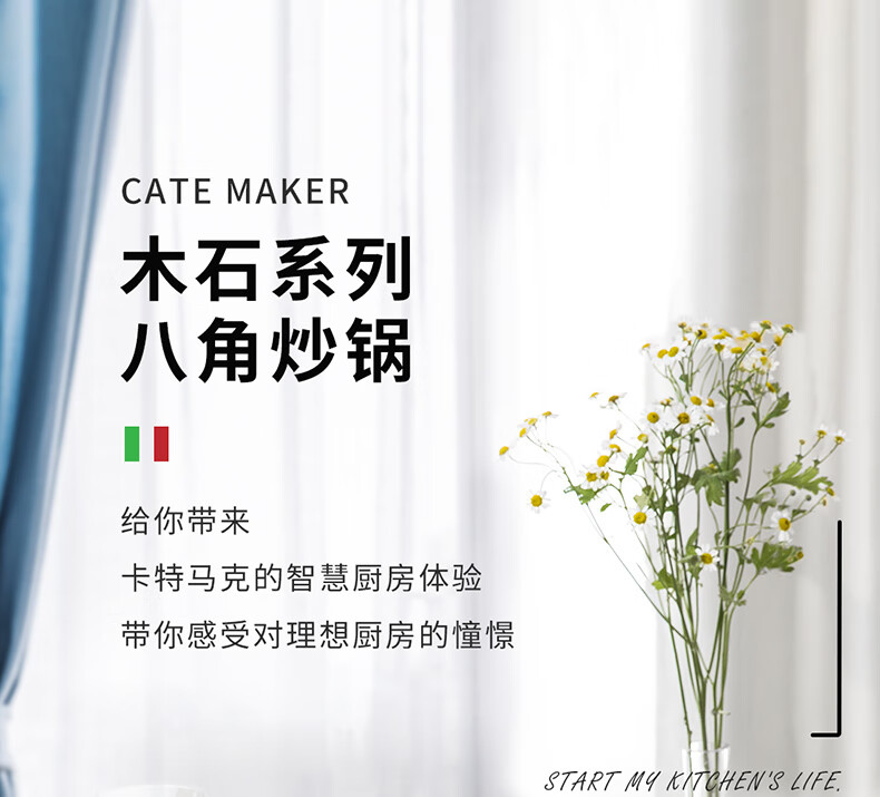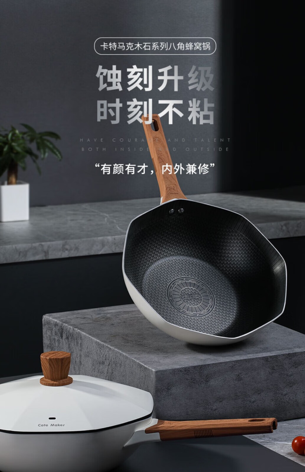 意大利卡特马克 麦饭石色不粘锅炒锅子炒菜平底八角锅具煤灶燃气电磁炉不沾烹饪 心选到家