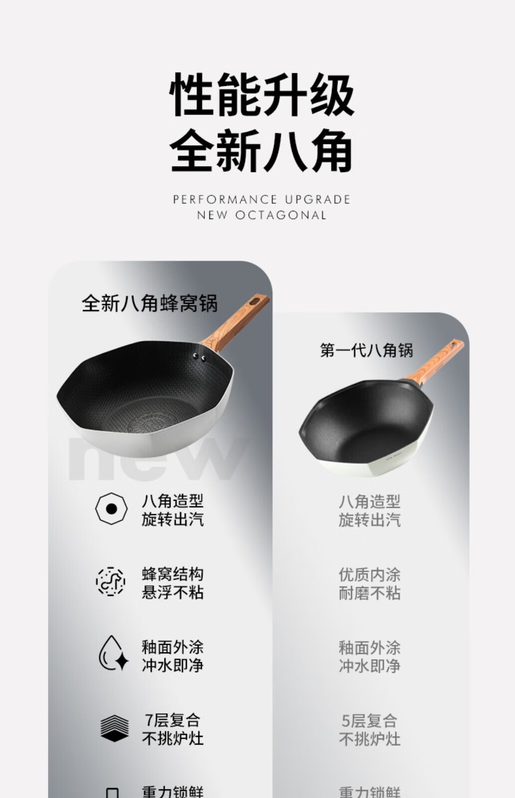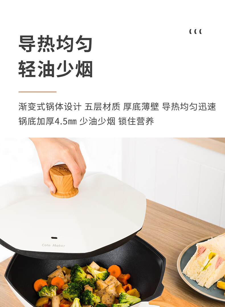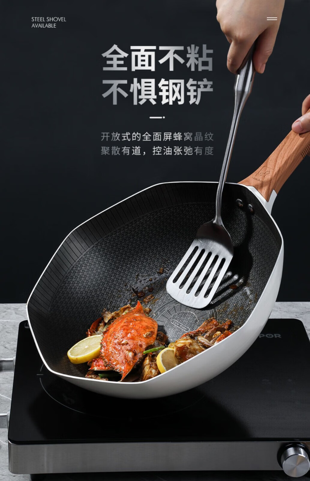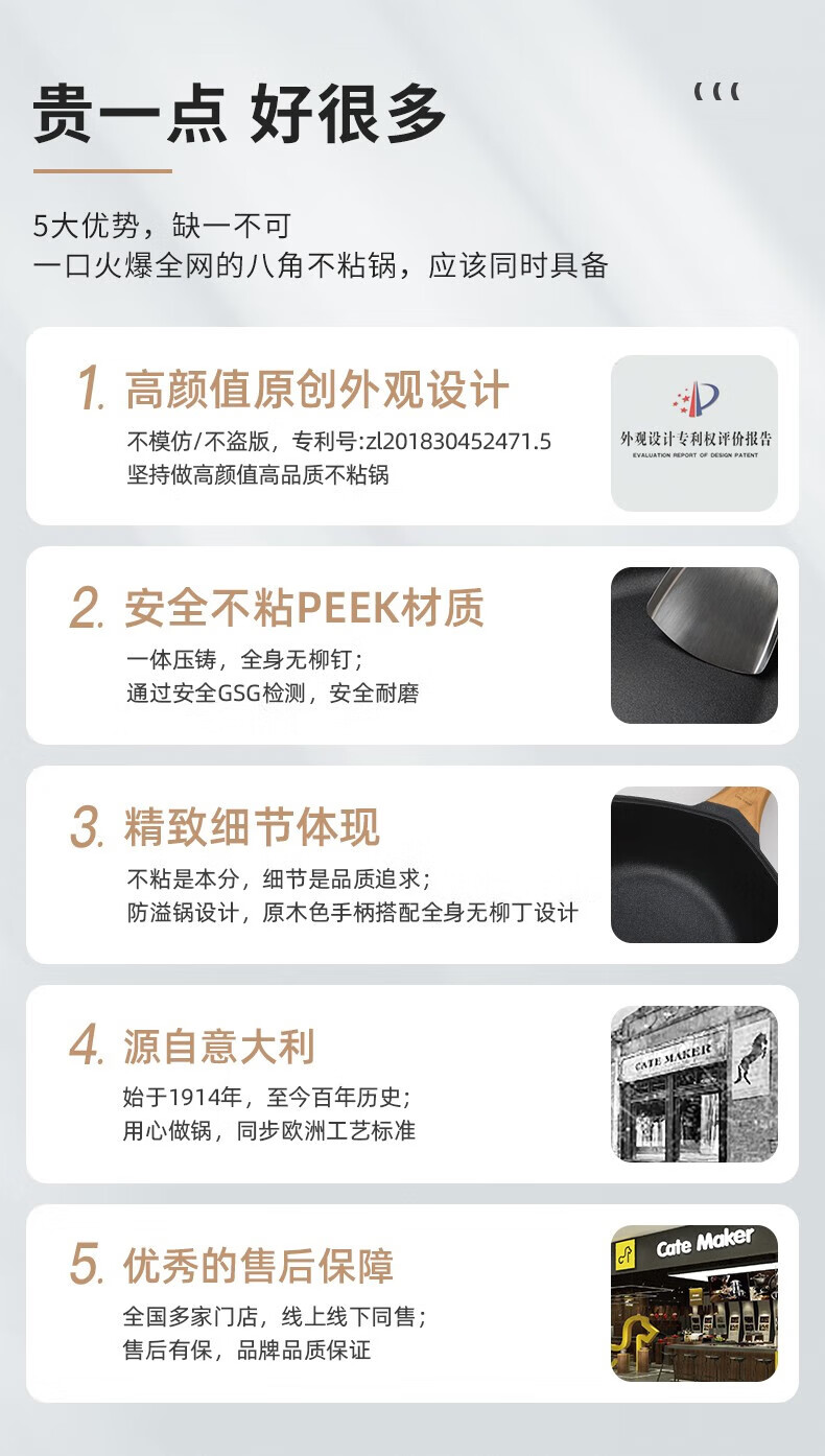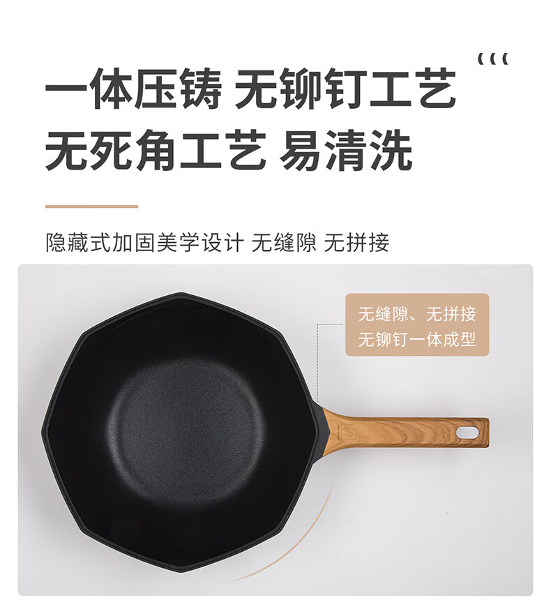 意大利卡特马克 麦饭石色不粘锅炒锅子炒菜平底八角锅具煤灶燃气电磁炉不沾烹饪 心选到家