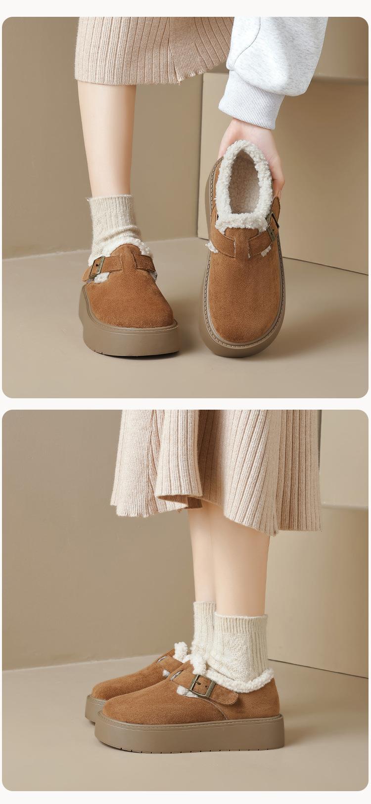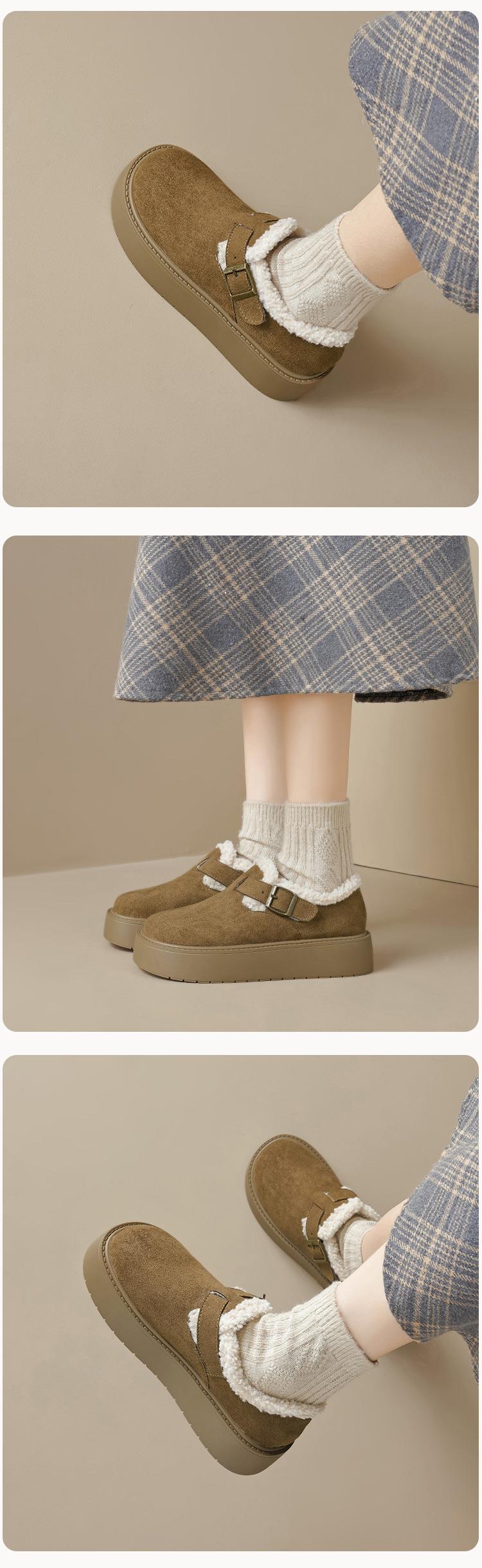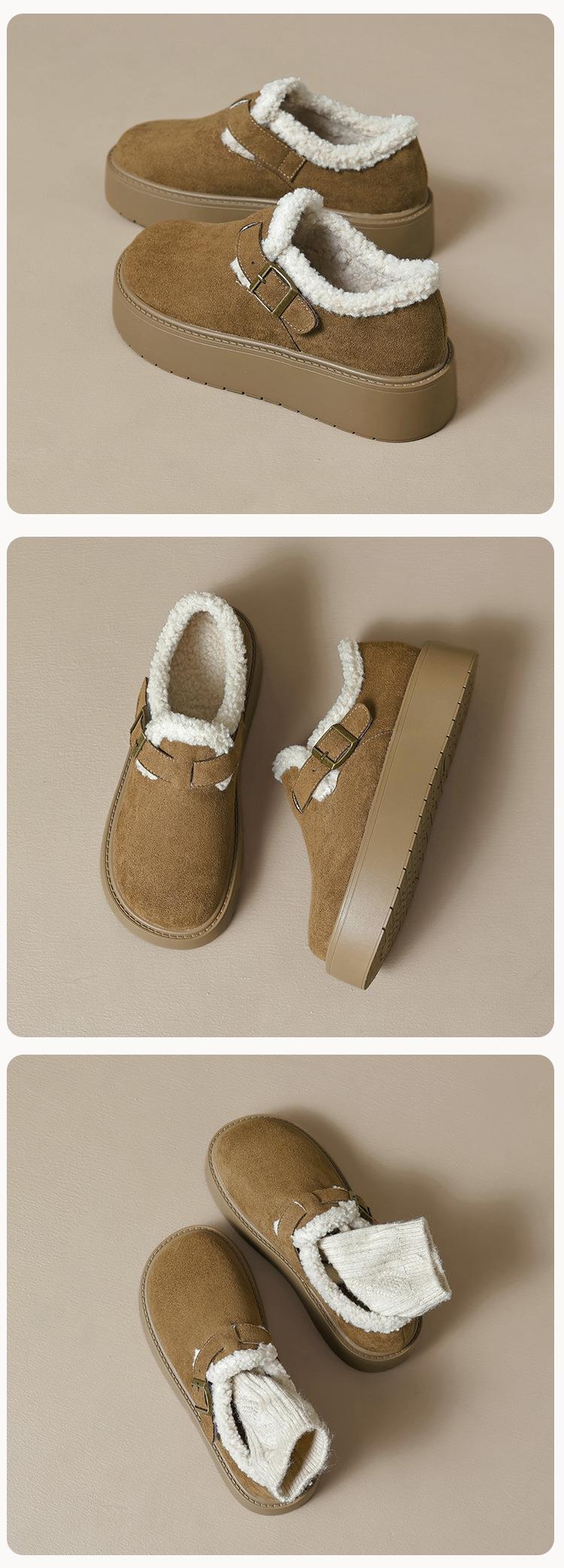 【小个子厚底加绒勃肯雪地靴】增高保暖棉鞋毛毛博肯单鞋女