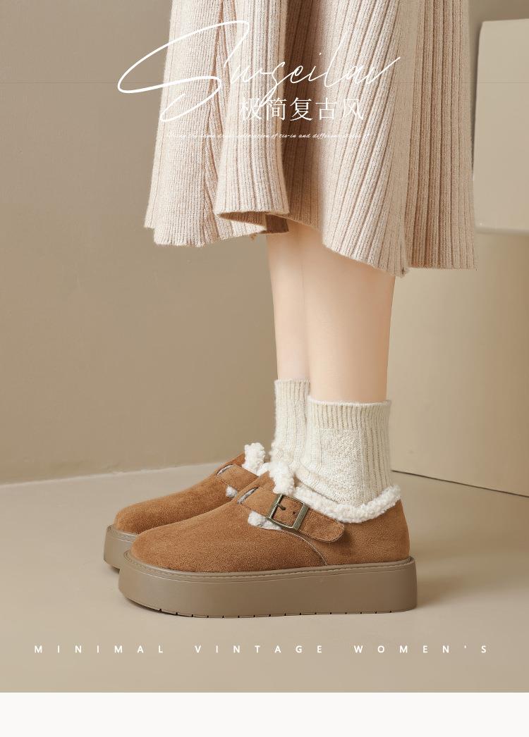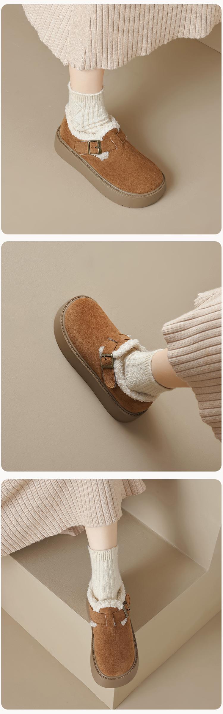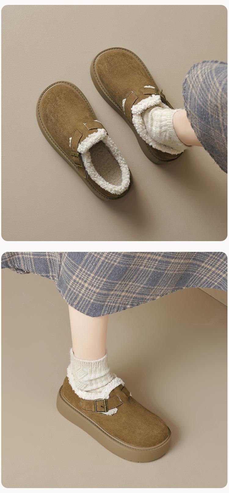 【小个子厚底加绒勃肯雪地靴】增高保暖棉鞋毛毛博肯单鞋女