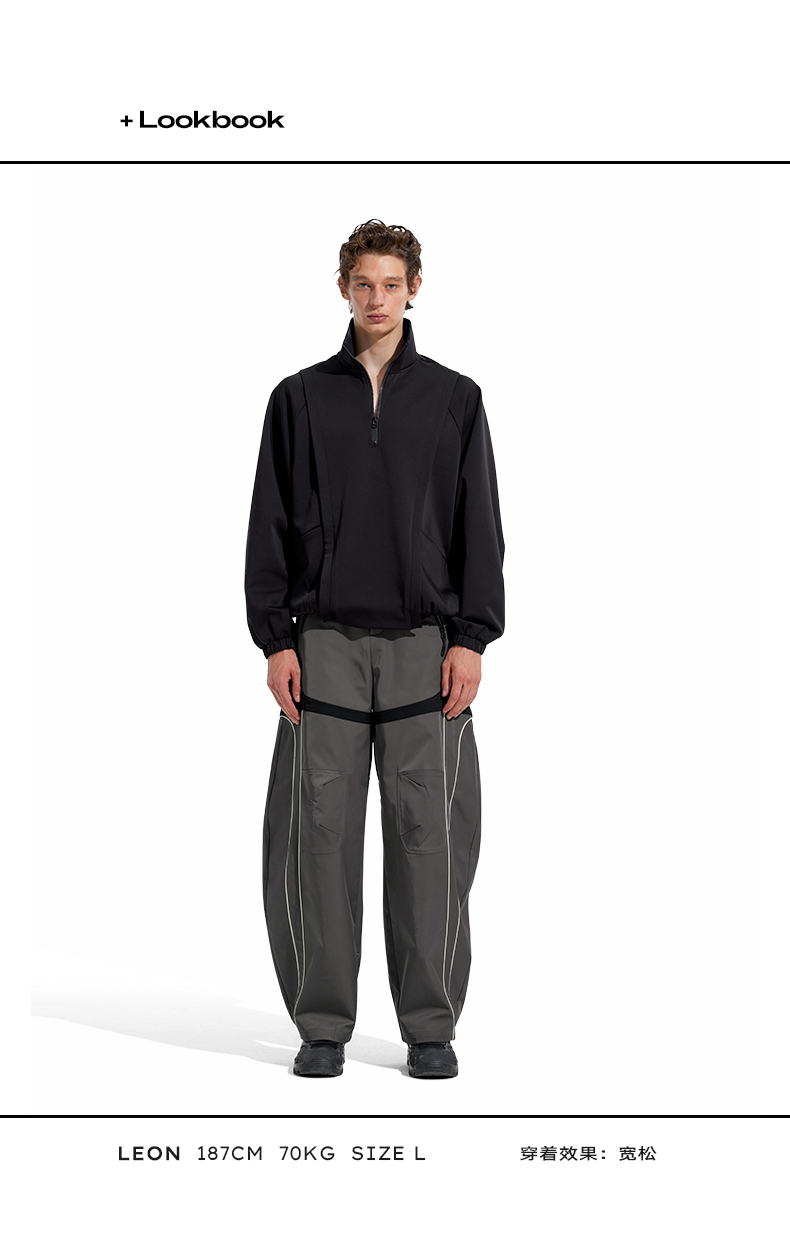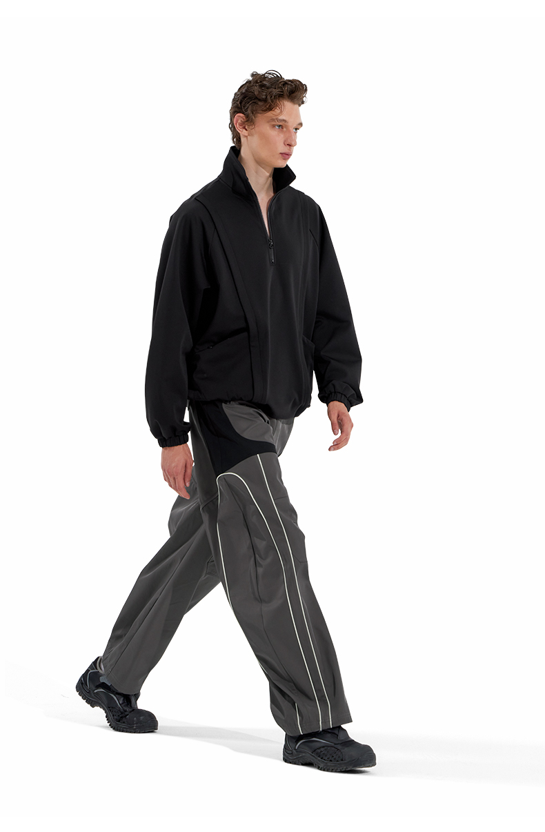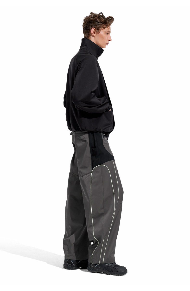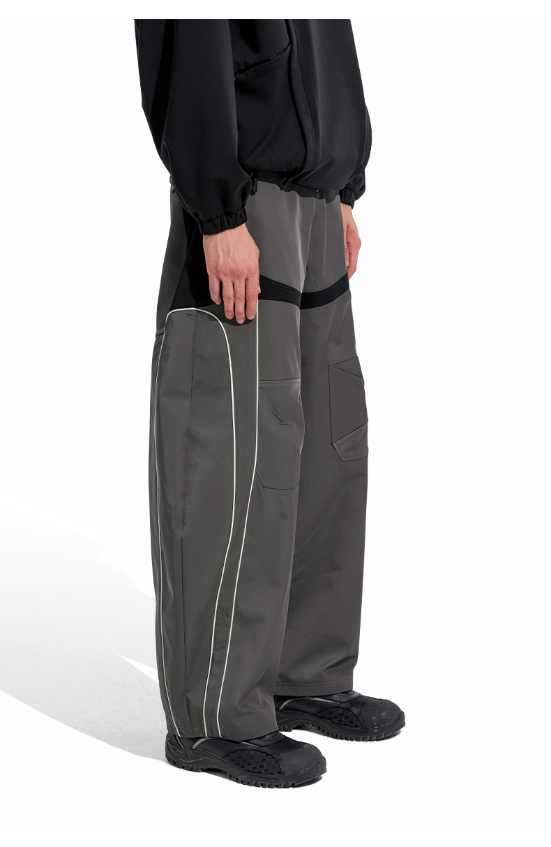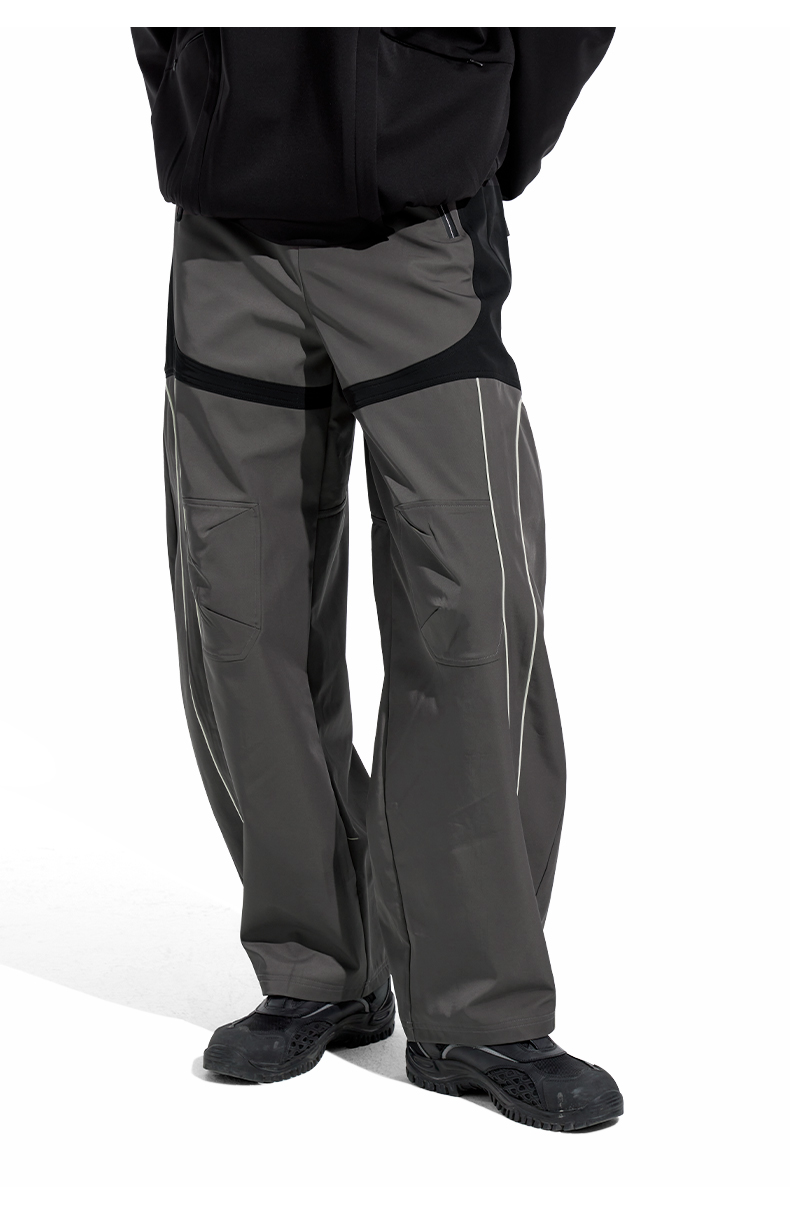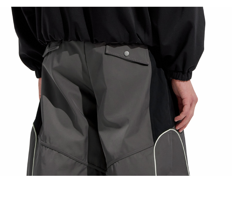 NUTH“Stepin”灰黑拼色休闲裤拼接宽松阔腿运动裤男