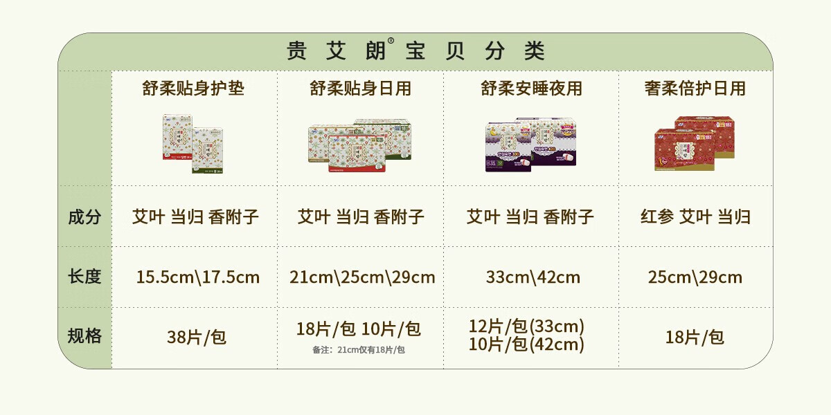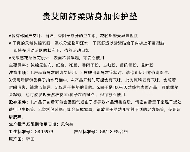 贵艾朗原LG贵爱娘韩国进口艾草日用姨妈巾卫生巾加长护垫155mm/175mm 38片*2包