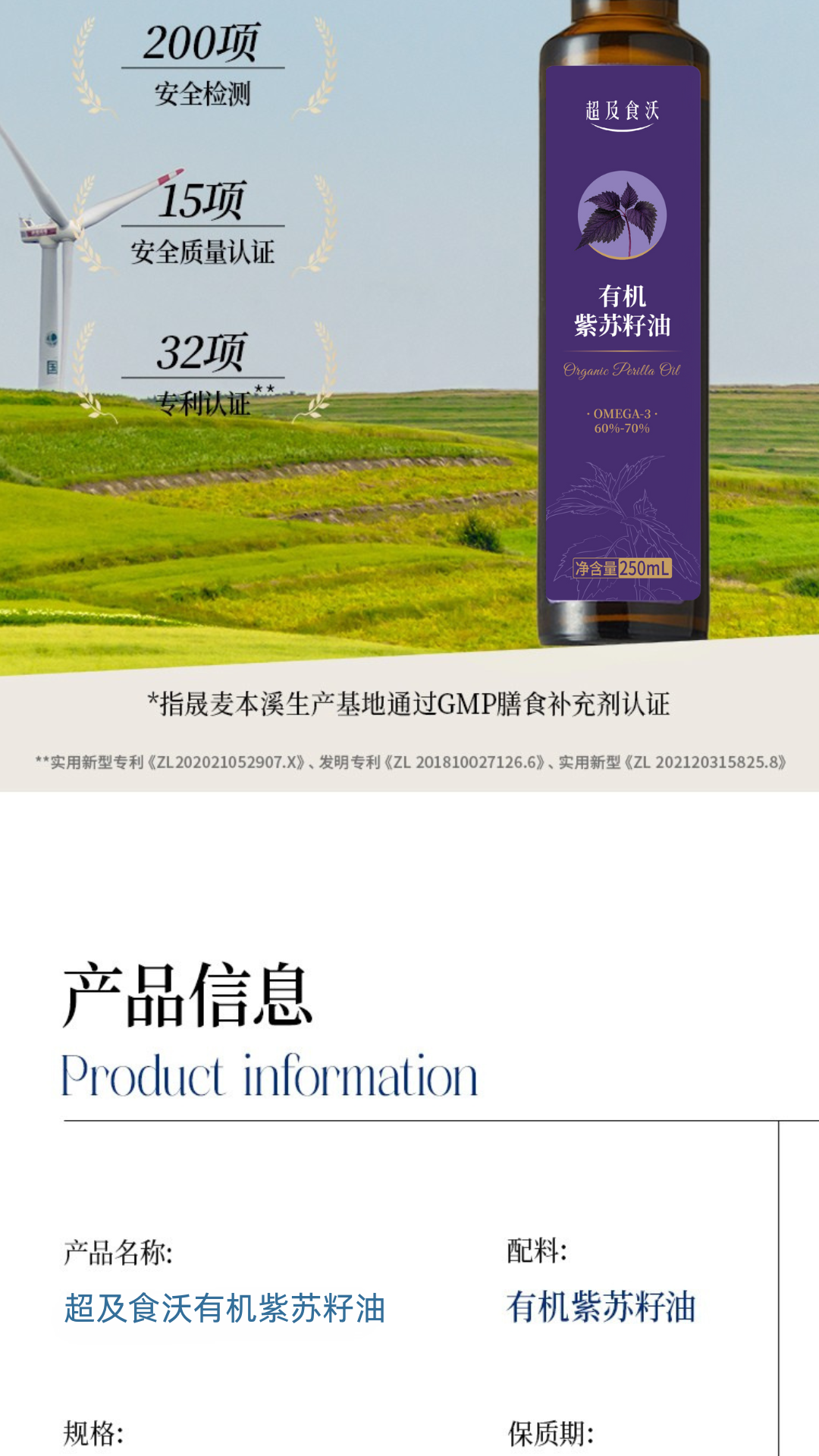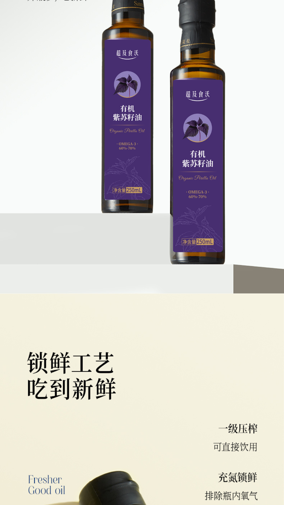 超及食沃有机紫苏籽油 250ml/瓶 Omega-3含量60%-70%