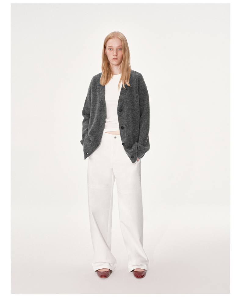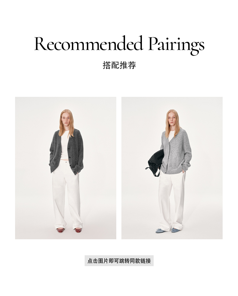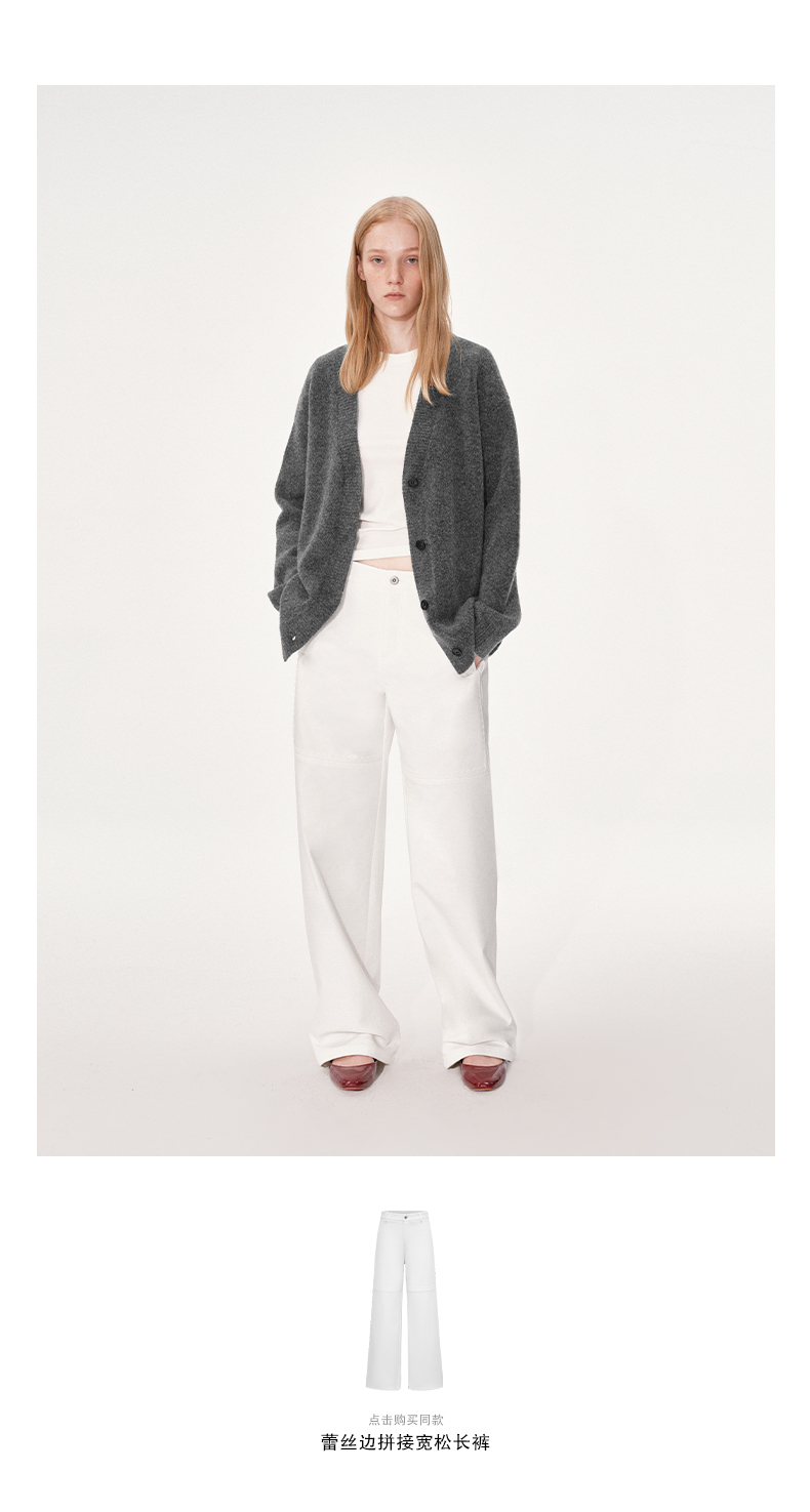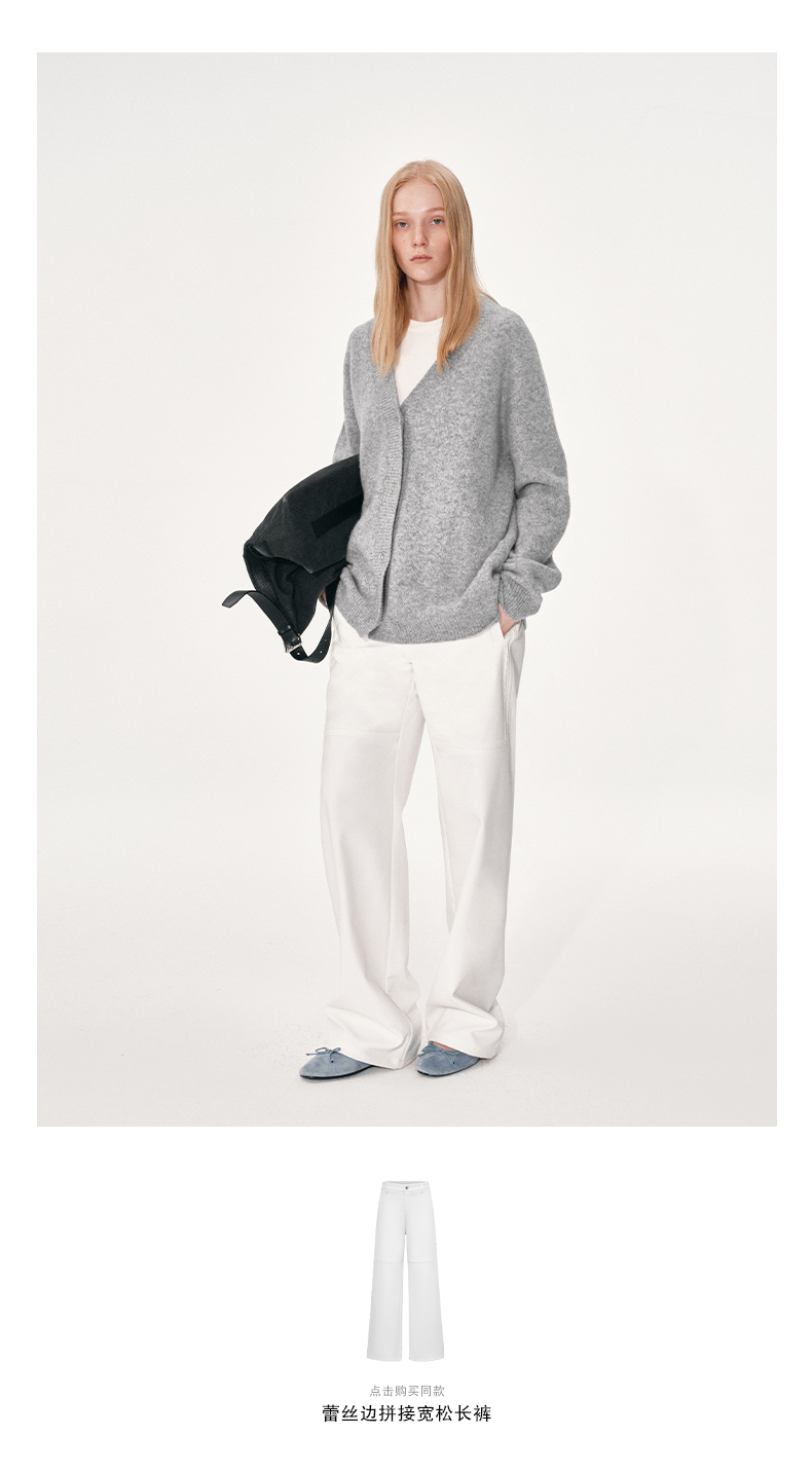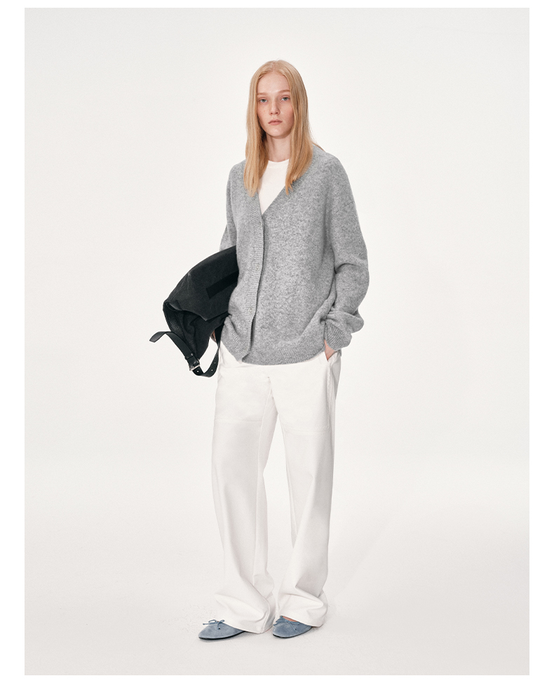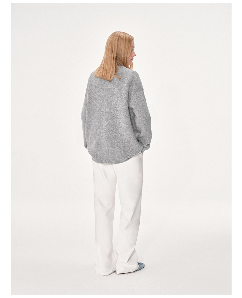 NUTH 羊毛混纺V领宽松保暖中长款毛衣针织开衫女 浅灰色/深灰色