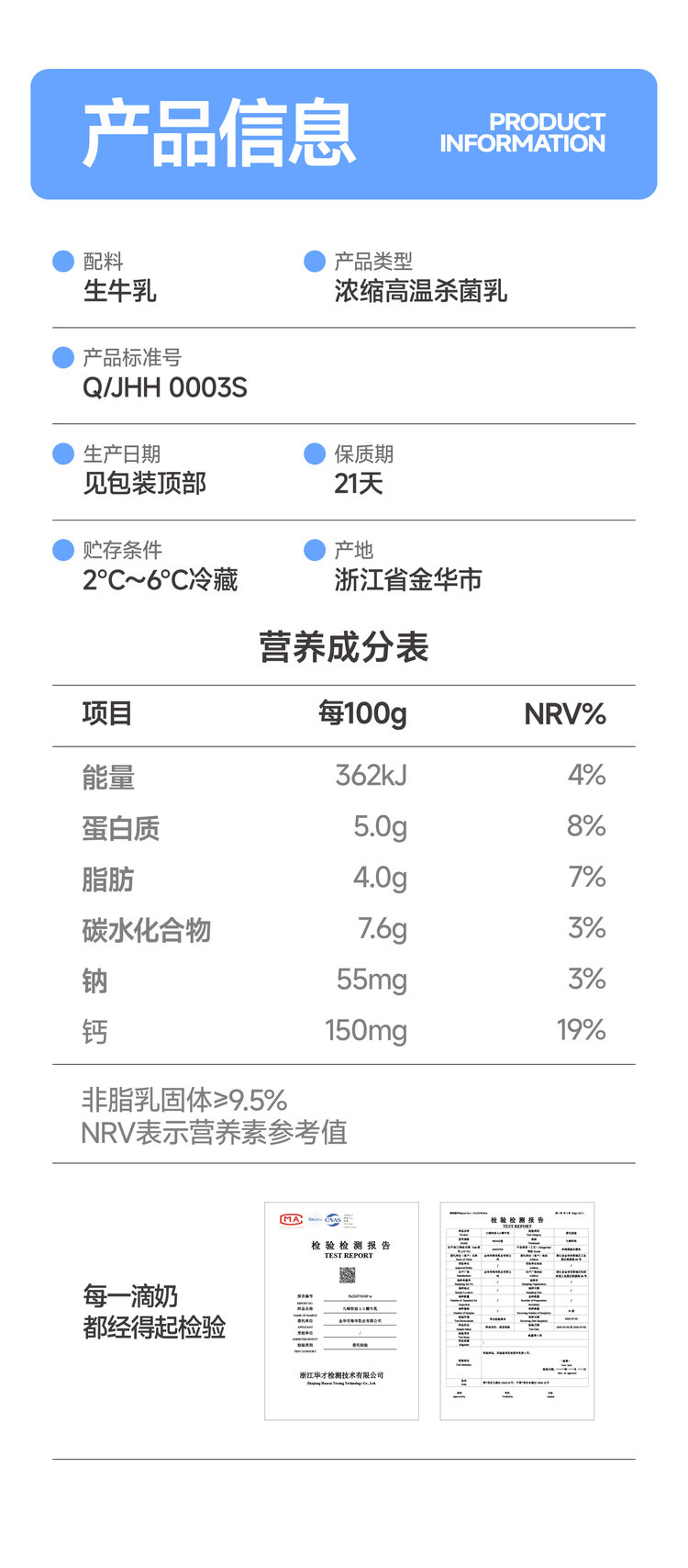 每100ml含5.0g原生优质乳蛋白+150mg原生钙
