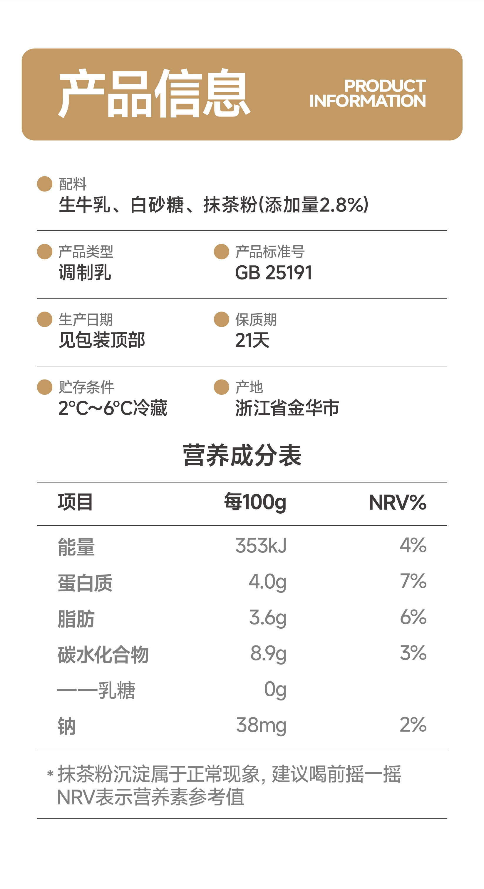 ✅0乳糖温柔配方,保留牛乳醇厚却无负担,肠胃敏感也能畅饮抹茶浓香