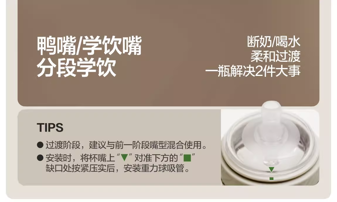 贝易学饮杯鸭嘴杯宝宝喝水杯成长杯婴幼儿吸管奶瓶6个月以上防呛【下单送鸭嘴+奶瓶刷,还可+1元参加换购奶嘴活动】