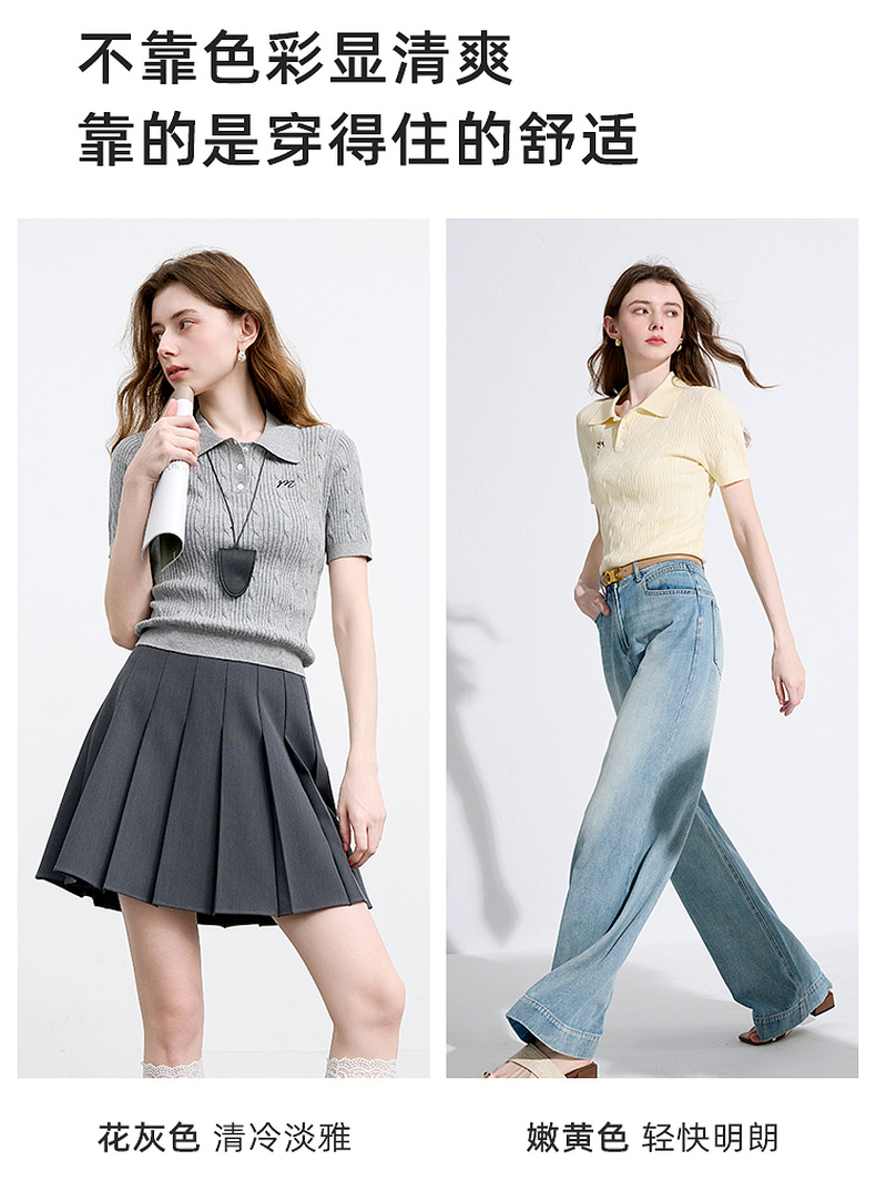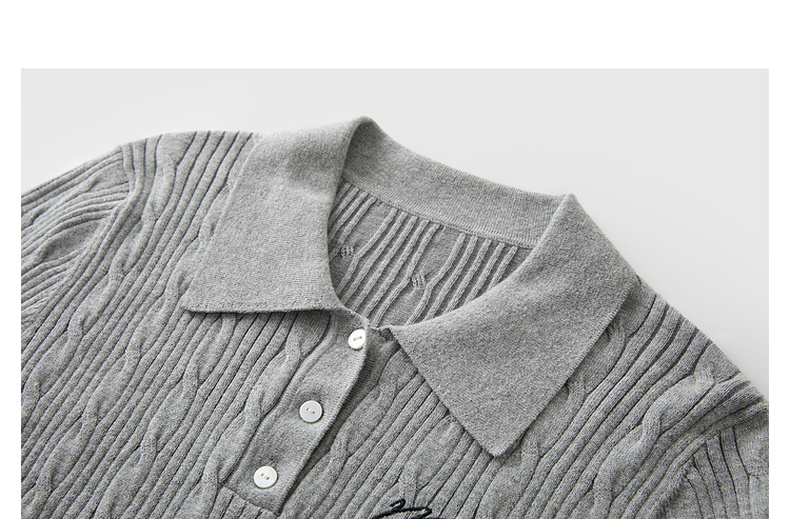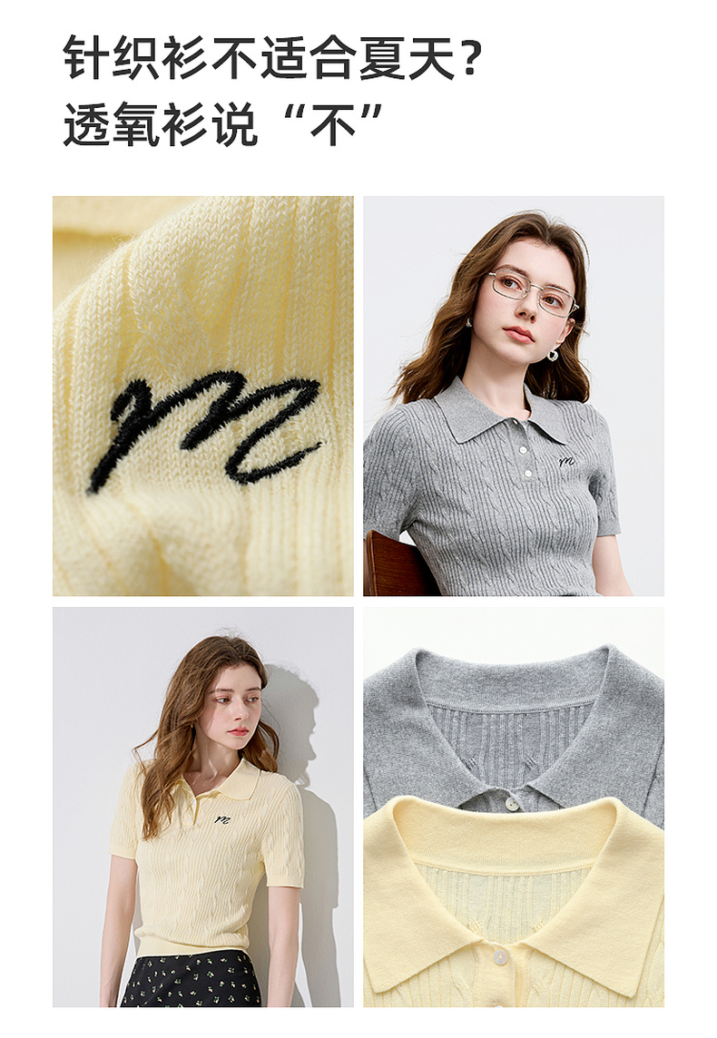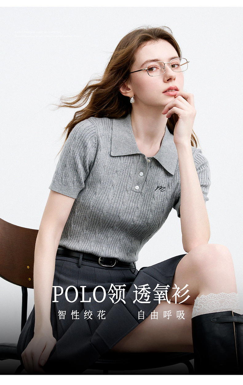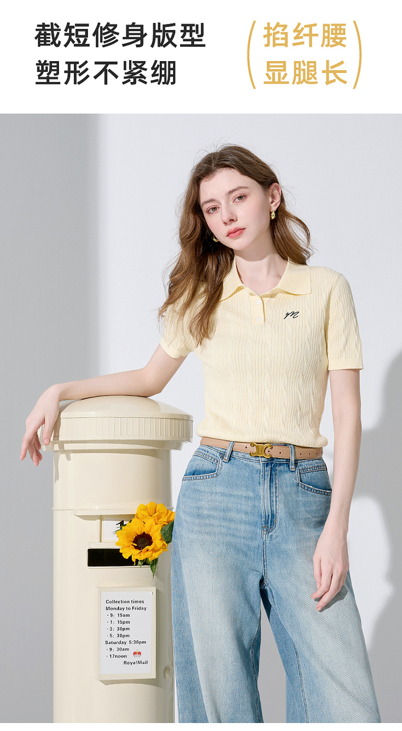 三彩2025秋季新款绞花针织衫POLO领毛衫刺绣短袖上衣短款M