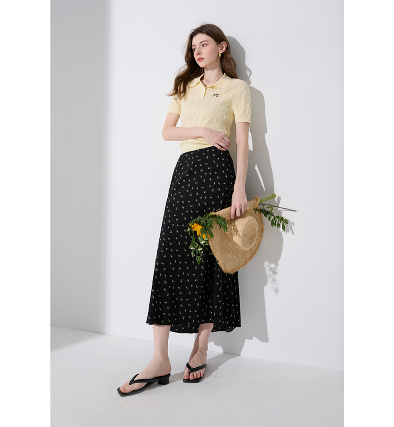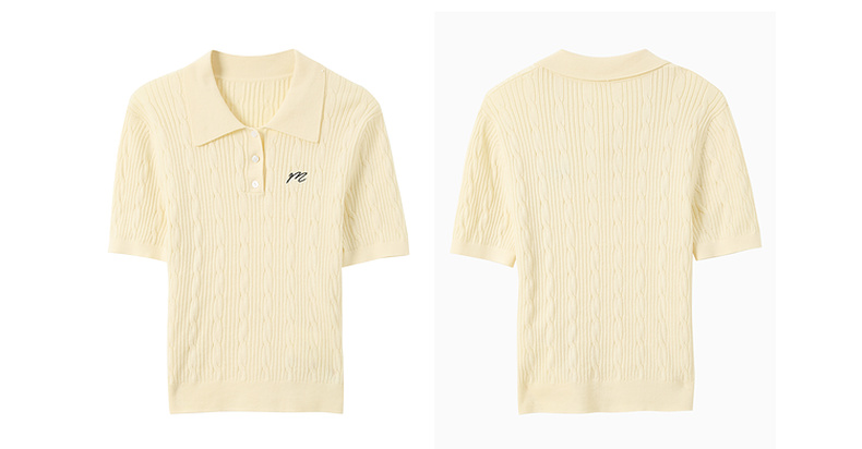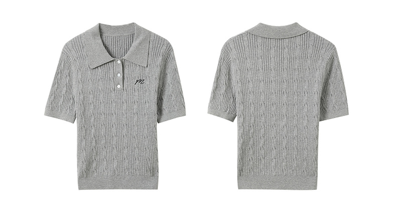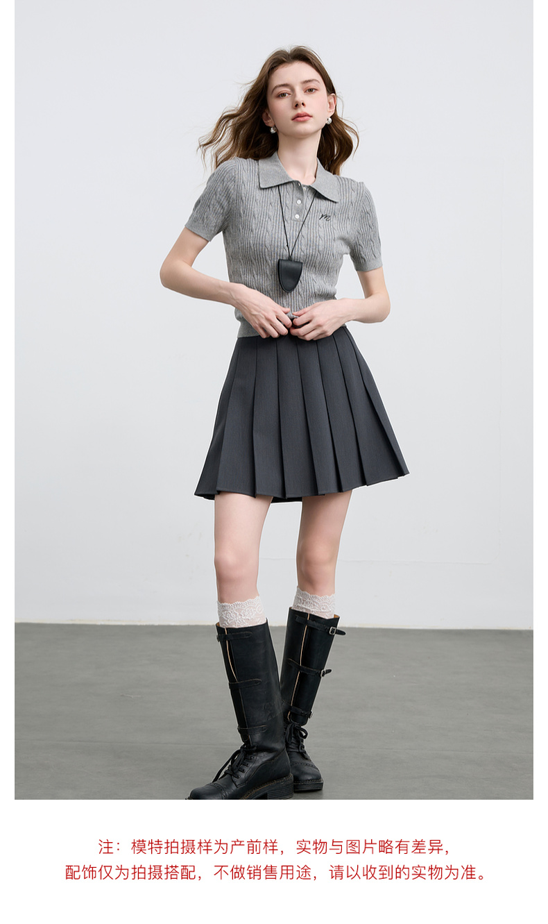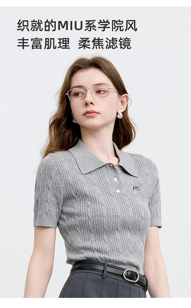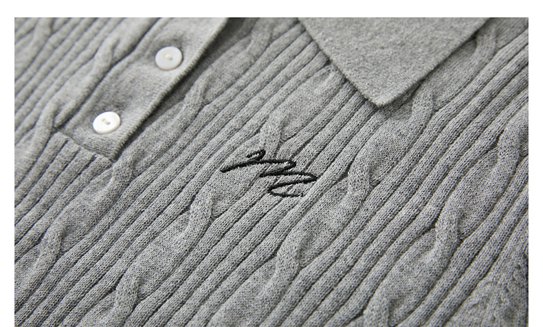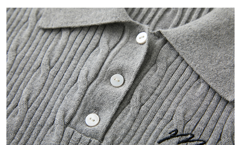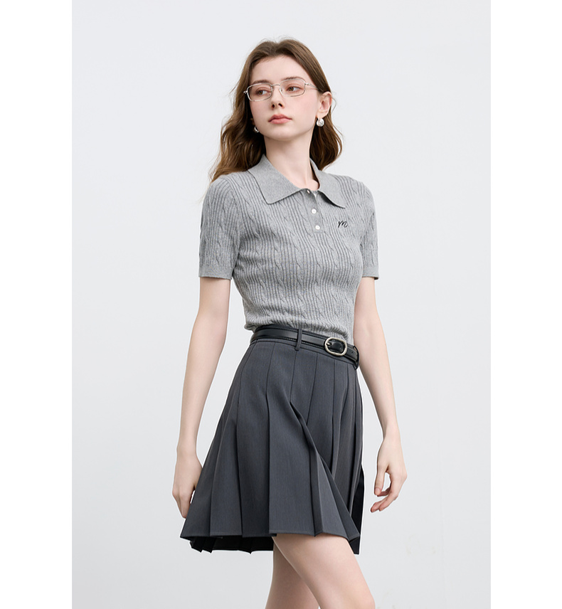 三彩2025秋季新款绞花针织衫POLO领毛衫刺绣短袖上衣短款M