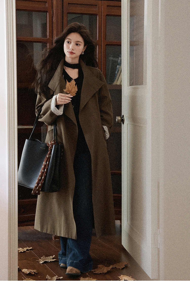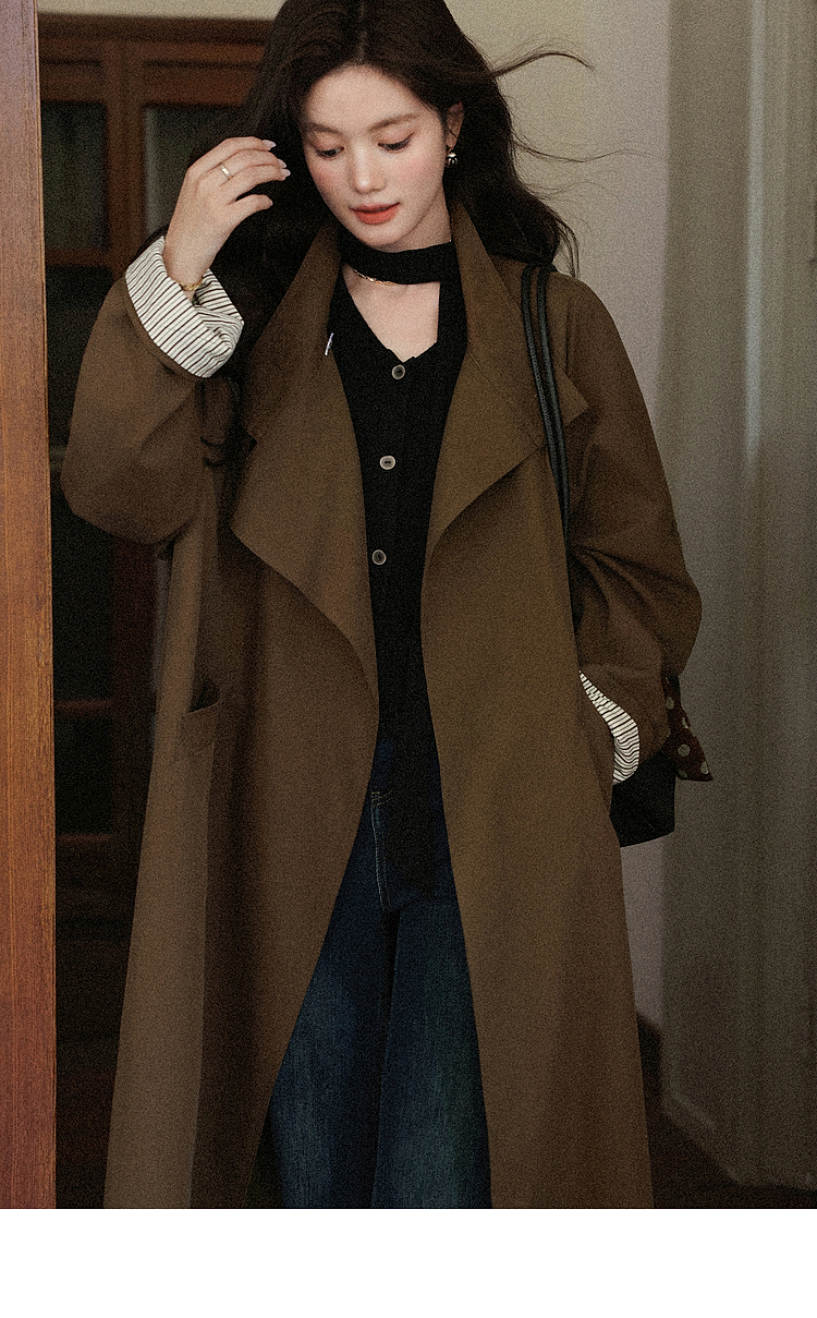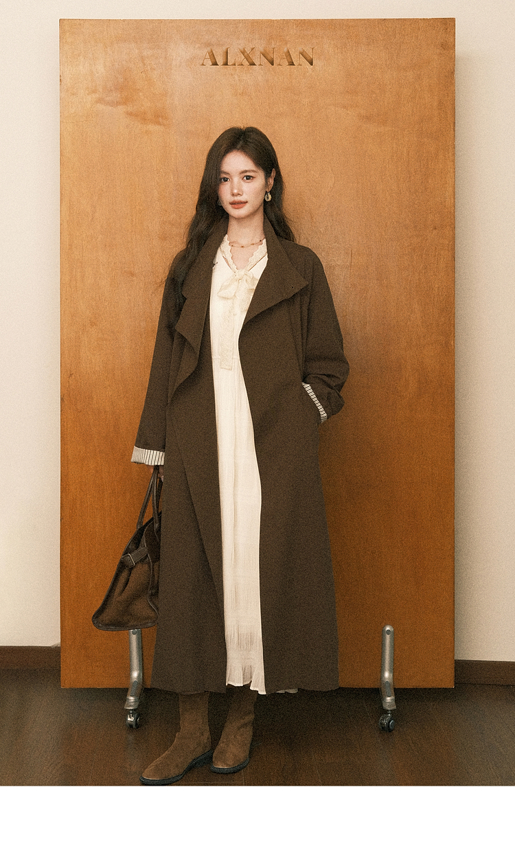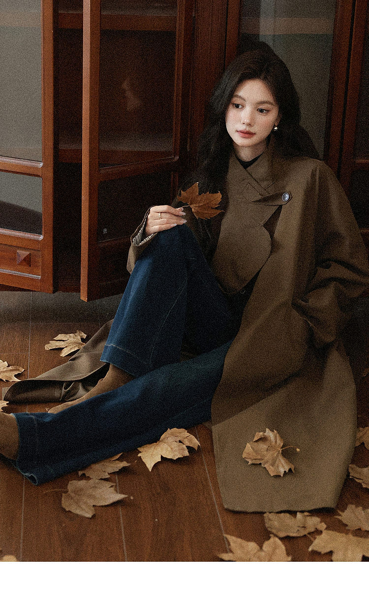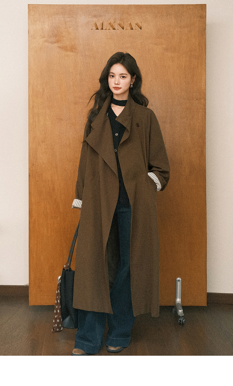 鹿向南「日落大道」时尚复古长款风衣女秋季新款小众咖色宽松外套
