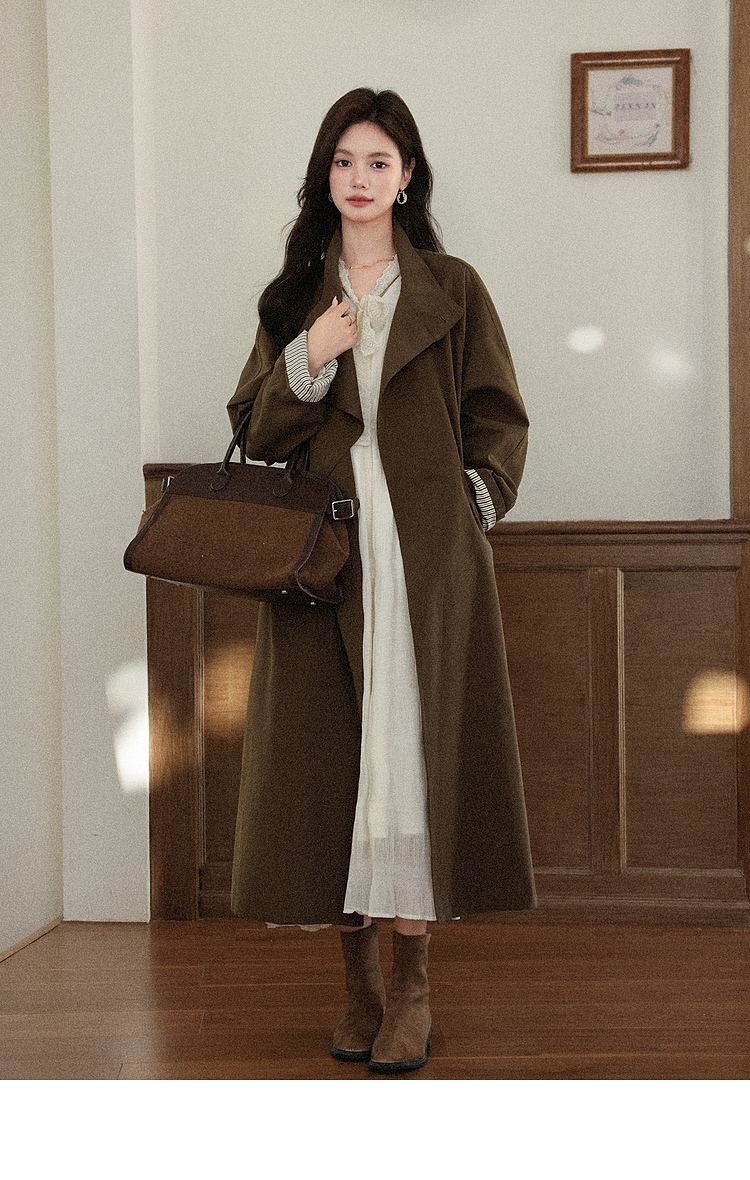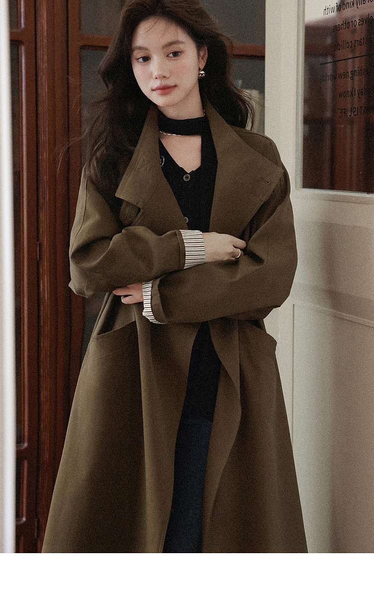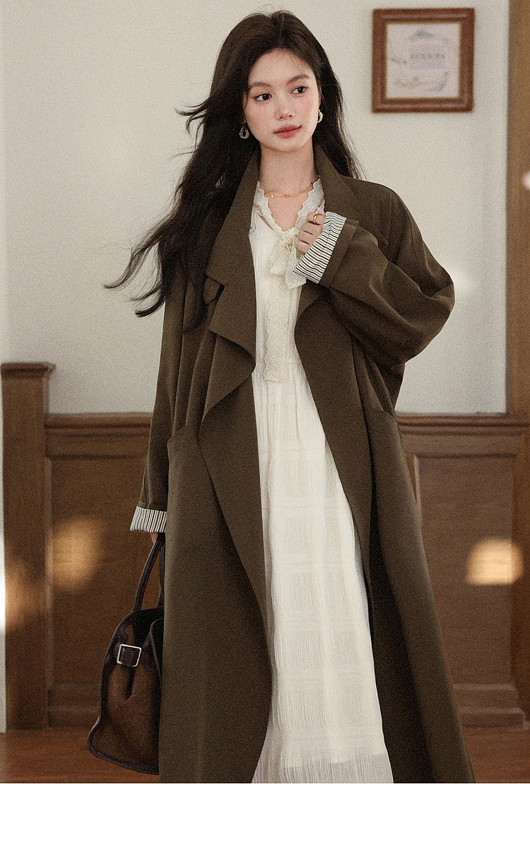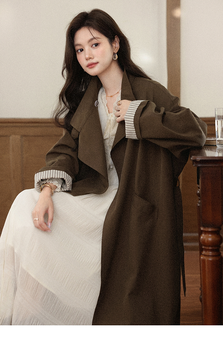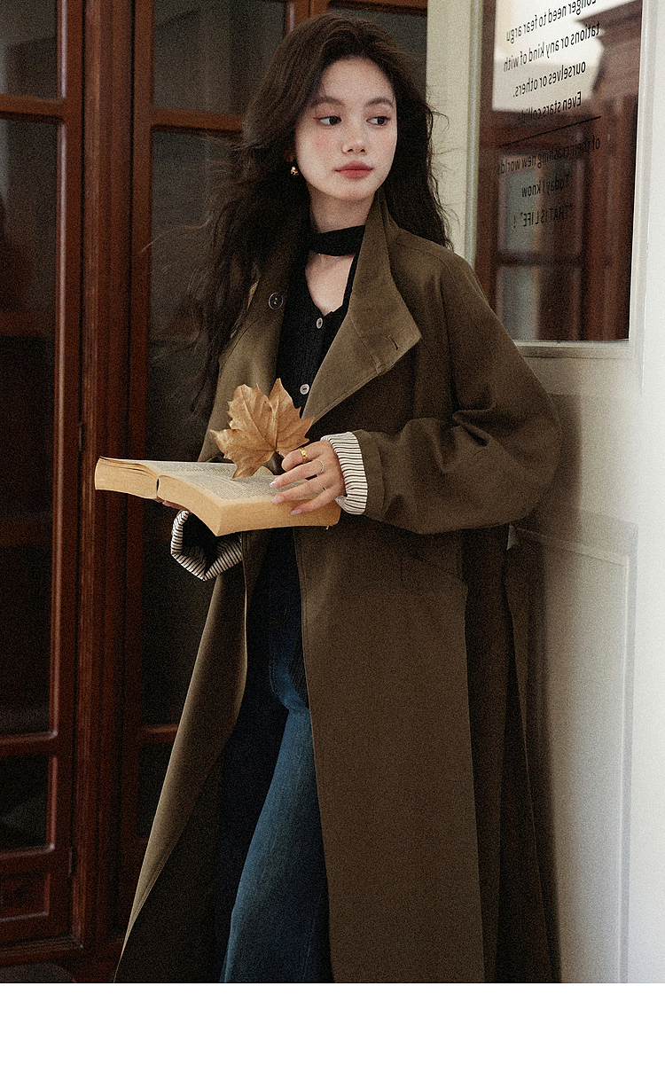 鹿向南「日落大道」时尚复古长款风衣女秋季新款小众咖色宽松外套