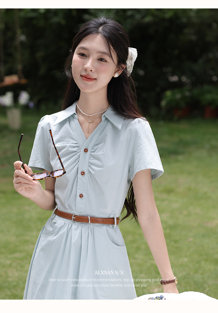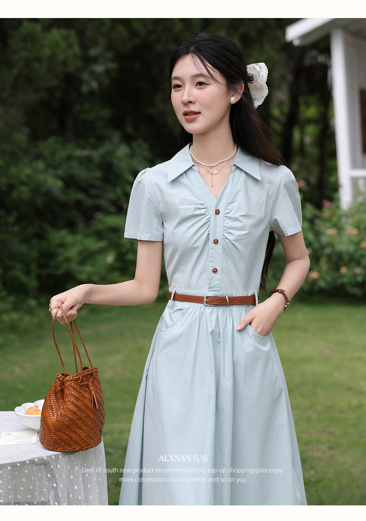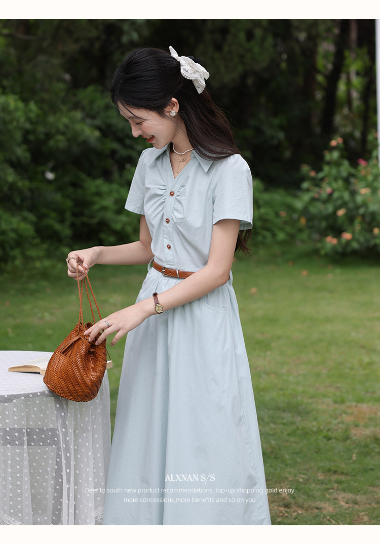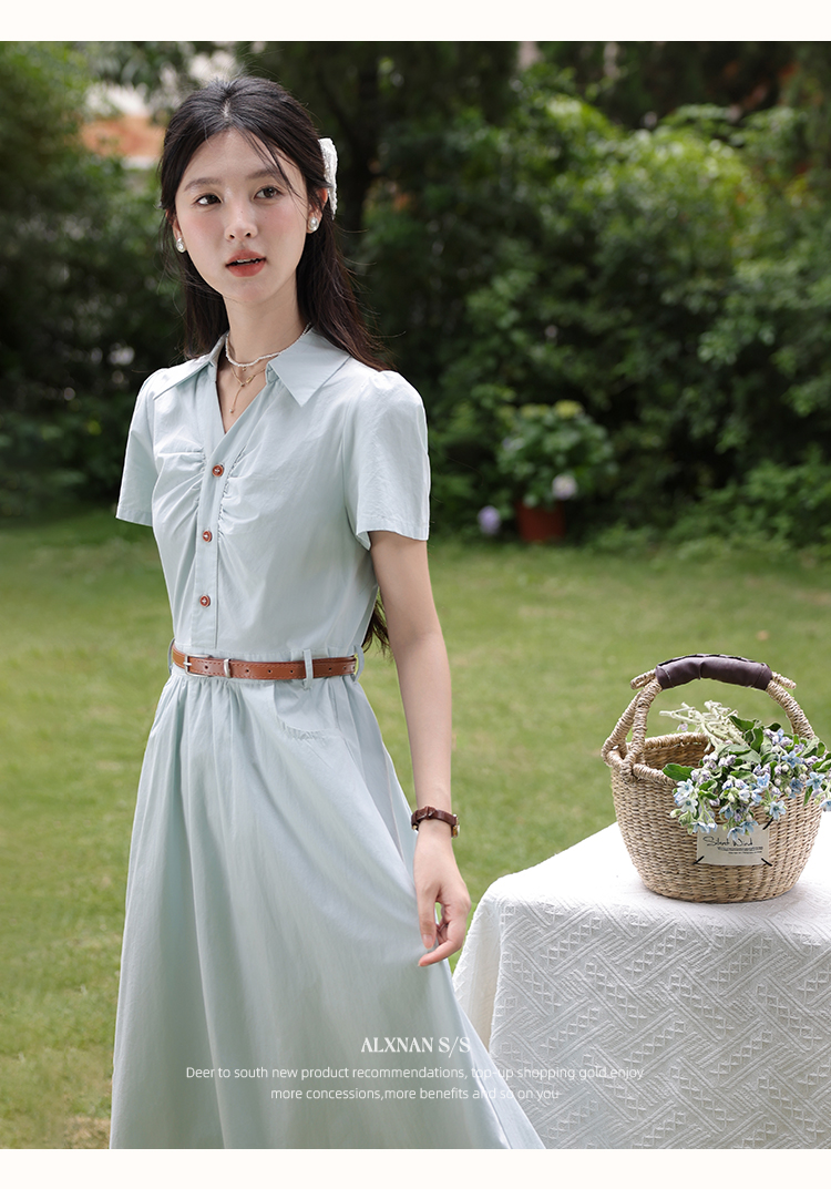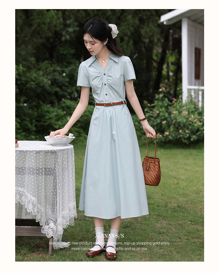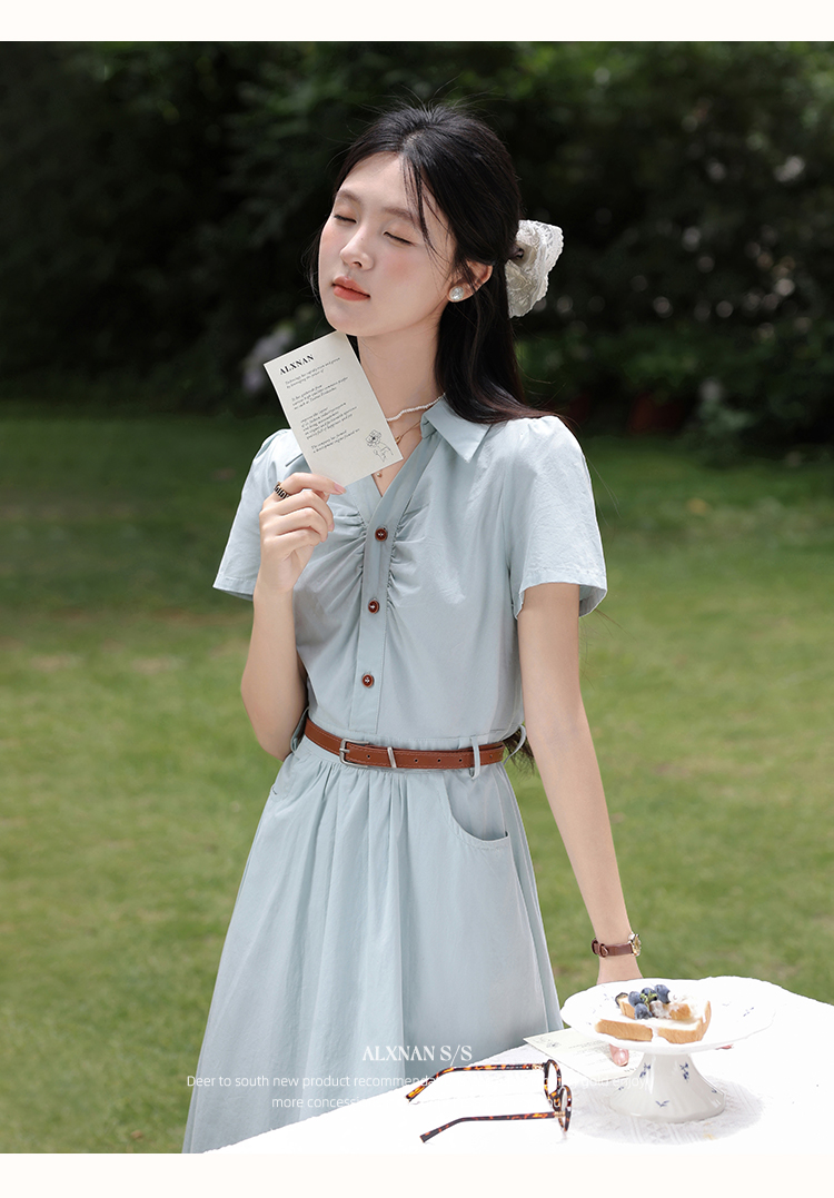 【6折秒杀】鹿向南「森野听风」法式甜美收腰显瘦短袖连衣裙女夏气质长裙子QYM002538