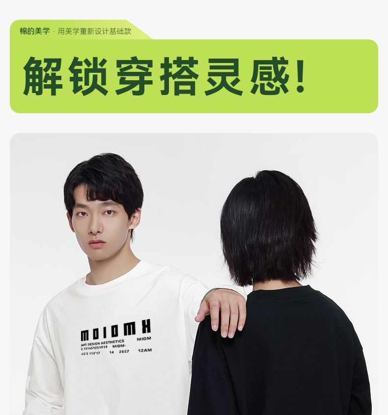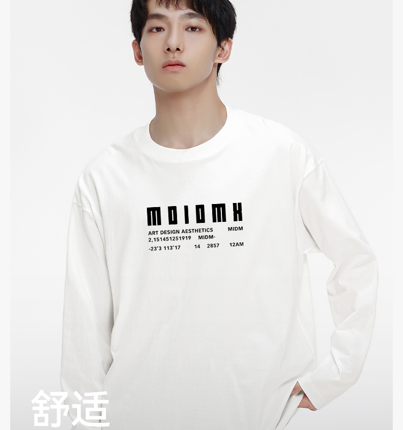 「棉的美学」203g纯棉字体印花T恤秋季薄款内搭日常简约长袖上衣